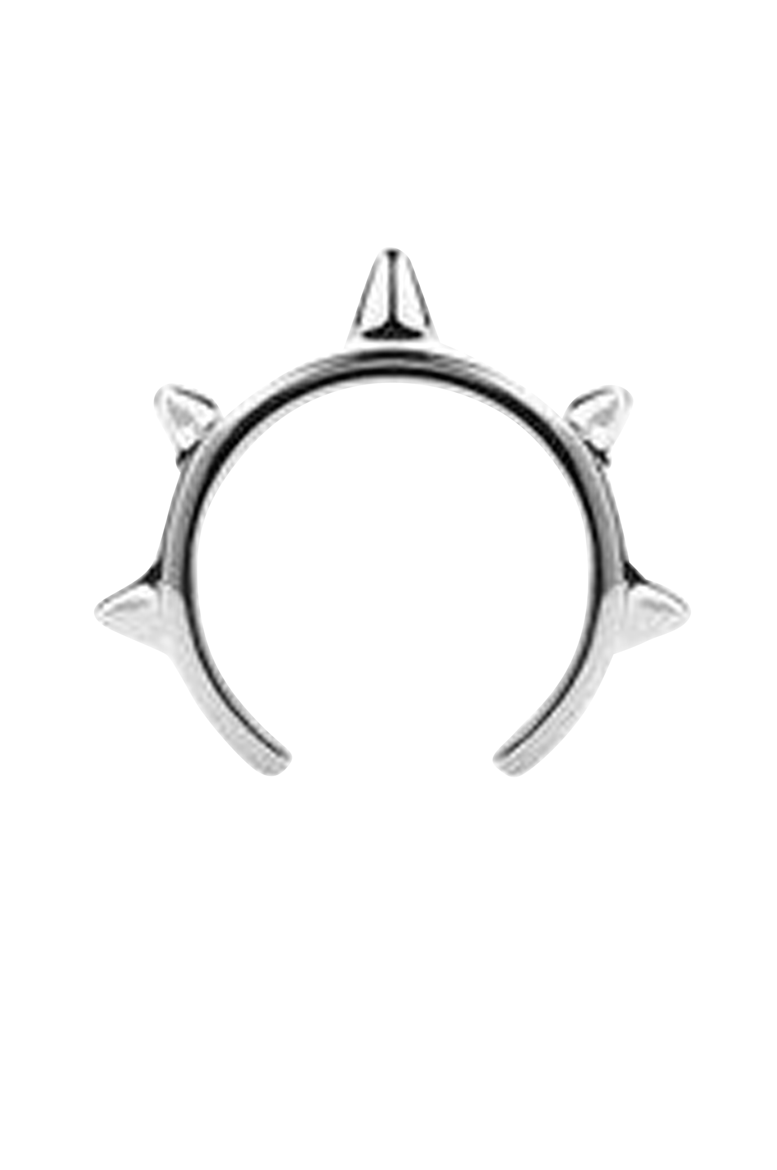 Cuff-øreringe med små spidser rundt om. Guldpletteret eller rodiumpletteret sølv.Mål Ø 1 cm