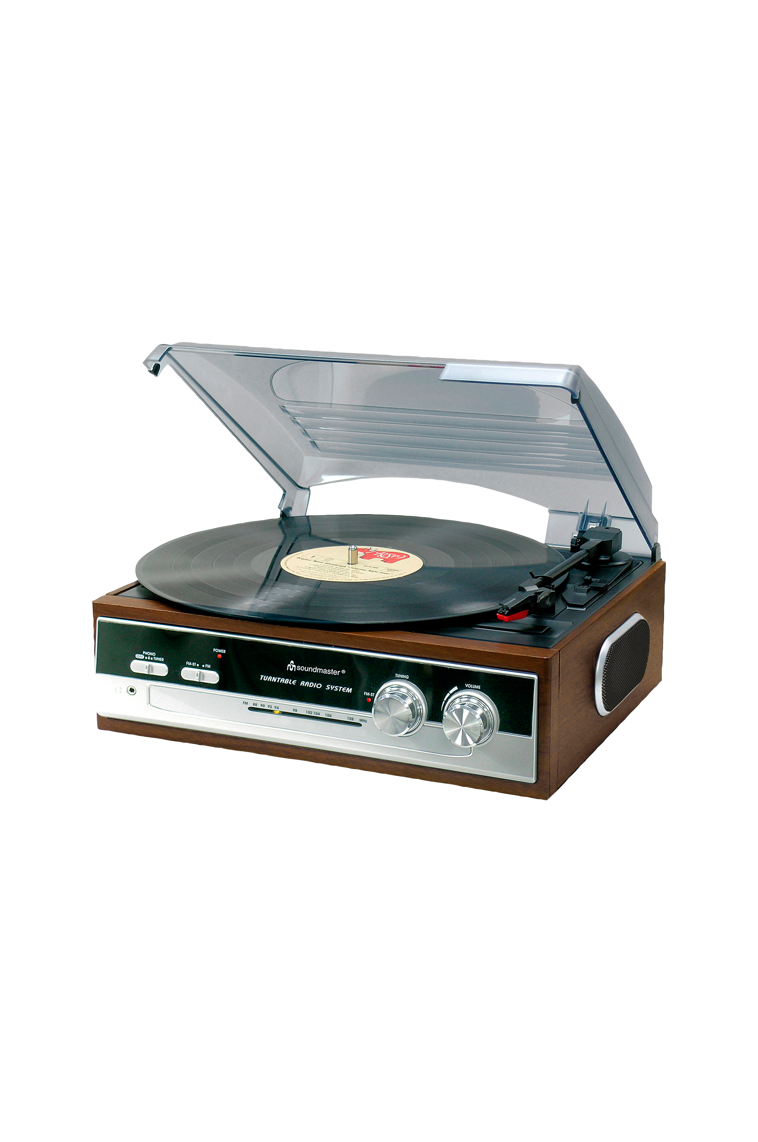 - Pladespiller: 33/45/78 RPM - FM-radio - Adapter til singler medfølger - Stik til hovedtelefoner - Line Out (RCA) til forstærker eller aktive højttalere - Indbyggede højttalere