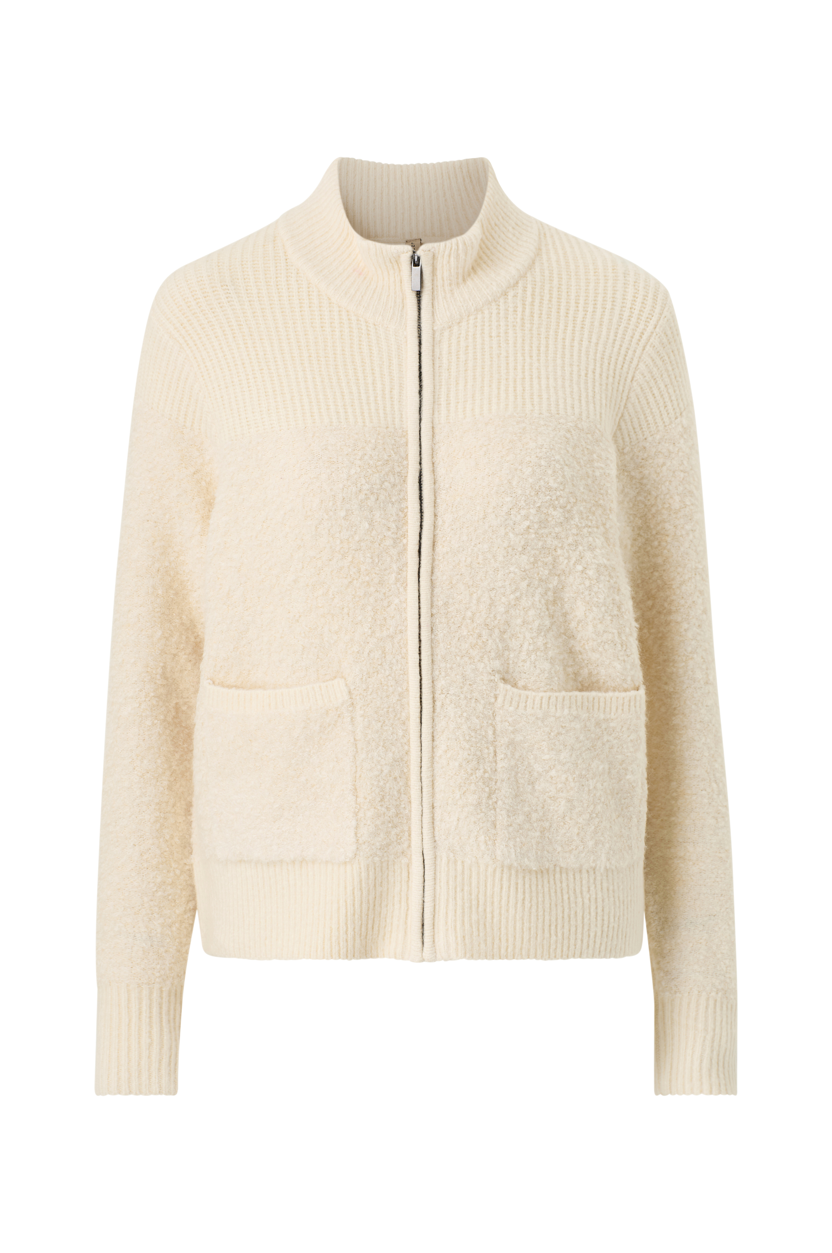 • Strikket cardigan i uldmiks med ribbet opretstående krave• Lynlås foran• Forlommer• Ribmanchetter ved manchetterne og ved nederste kant