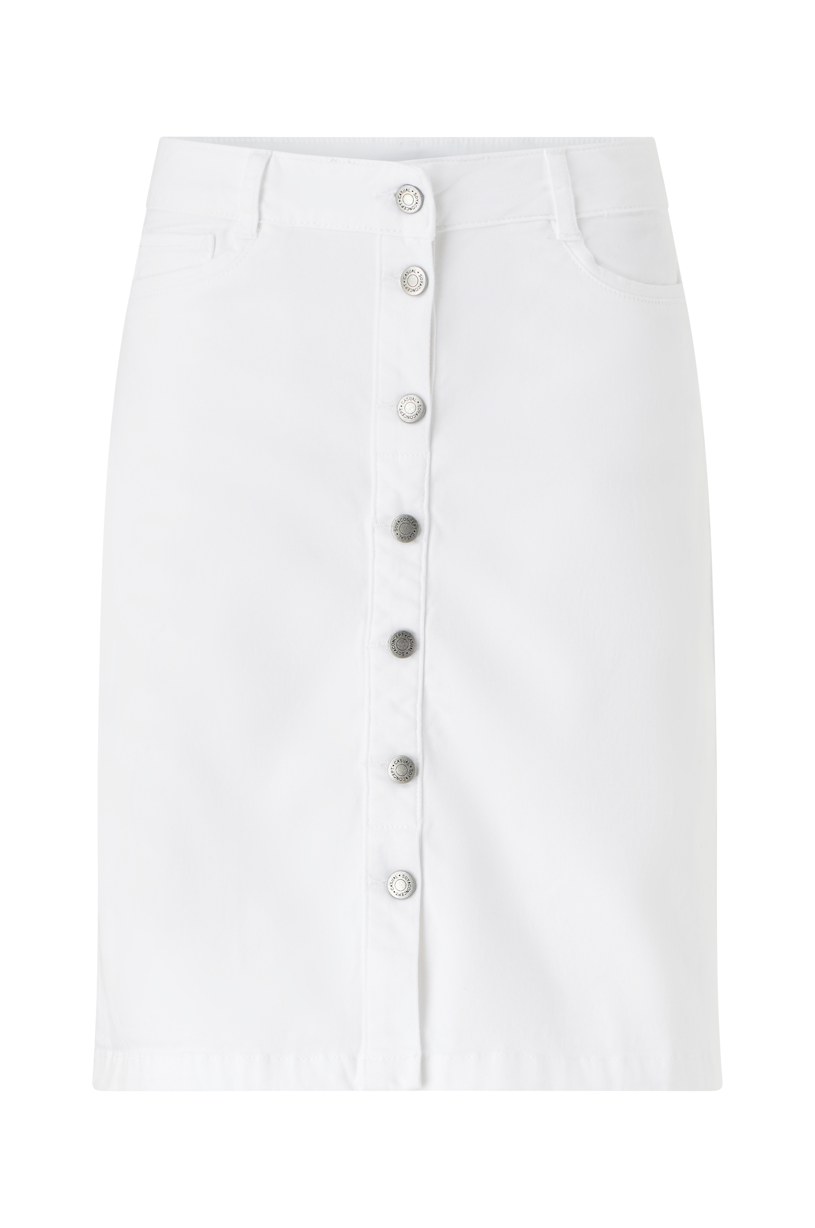 • Let udsvingende model• Tre jeanslommer foran• Knapper ved fronten• Længde: 54 cm i størrelse 36