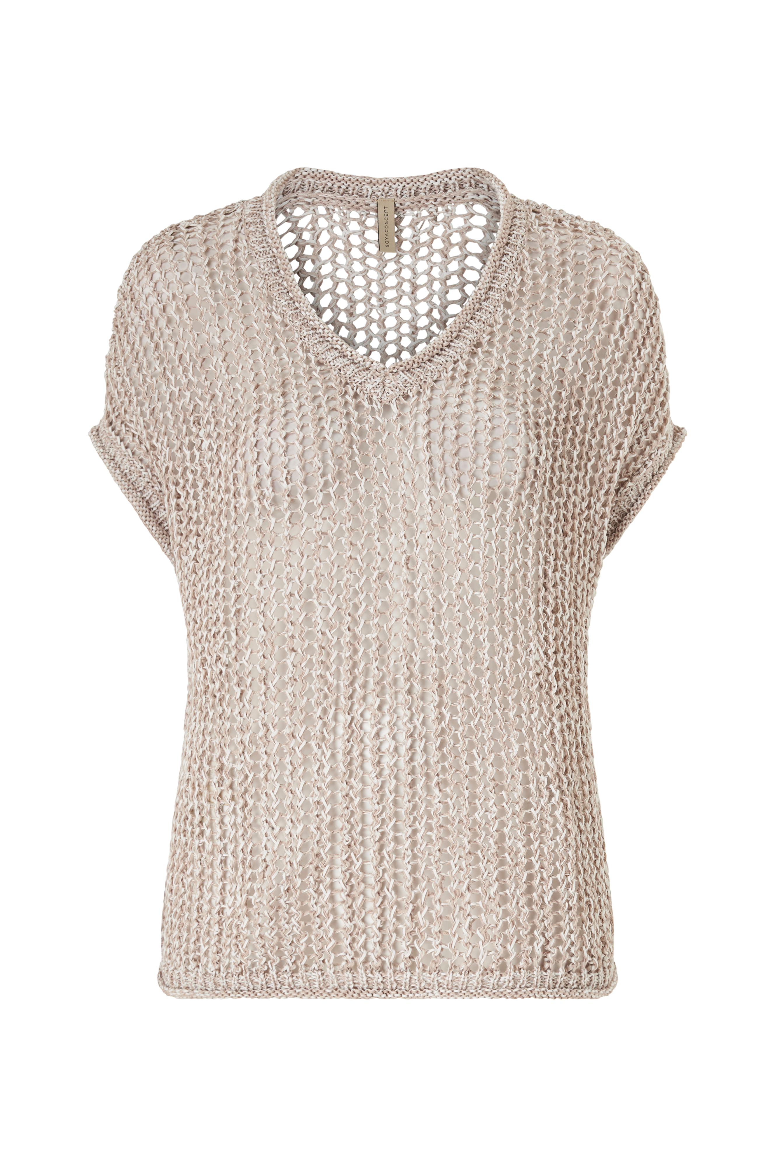 • Løststrikket Pullover med korte ærmer• V-formet halsudskæring• Ribstrik i halsen, på ærmeafslutningerne og nederst