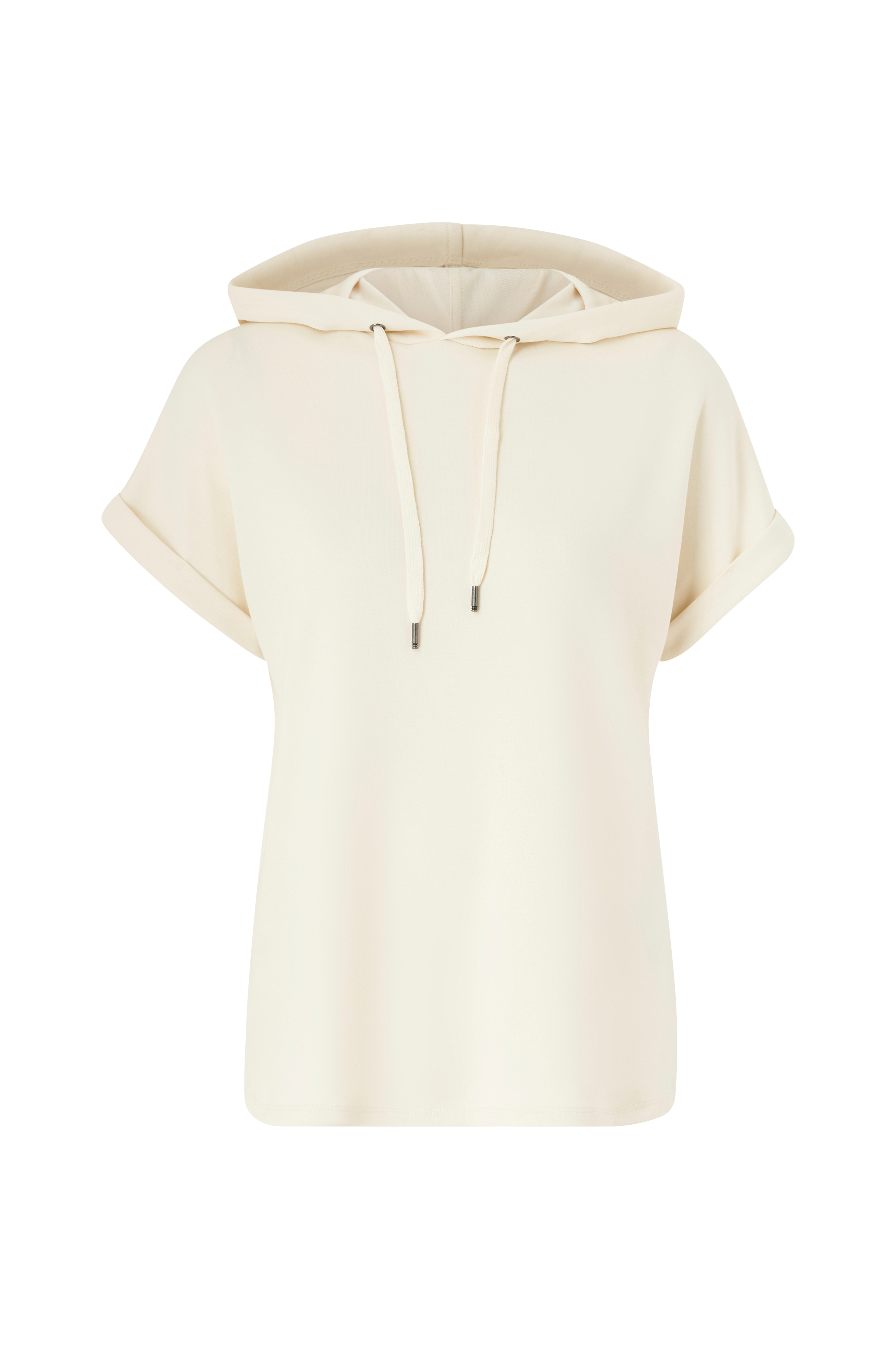 • Kortærmet sweatshirt i blød, elastisk kvalitet• Hætte med træksnørre• Syede, foldede ærmer• Afrundede kanter nederst med ventilation på siderne