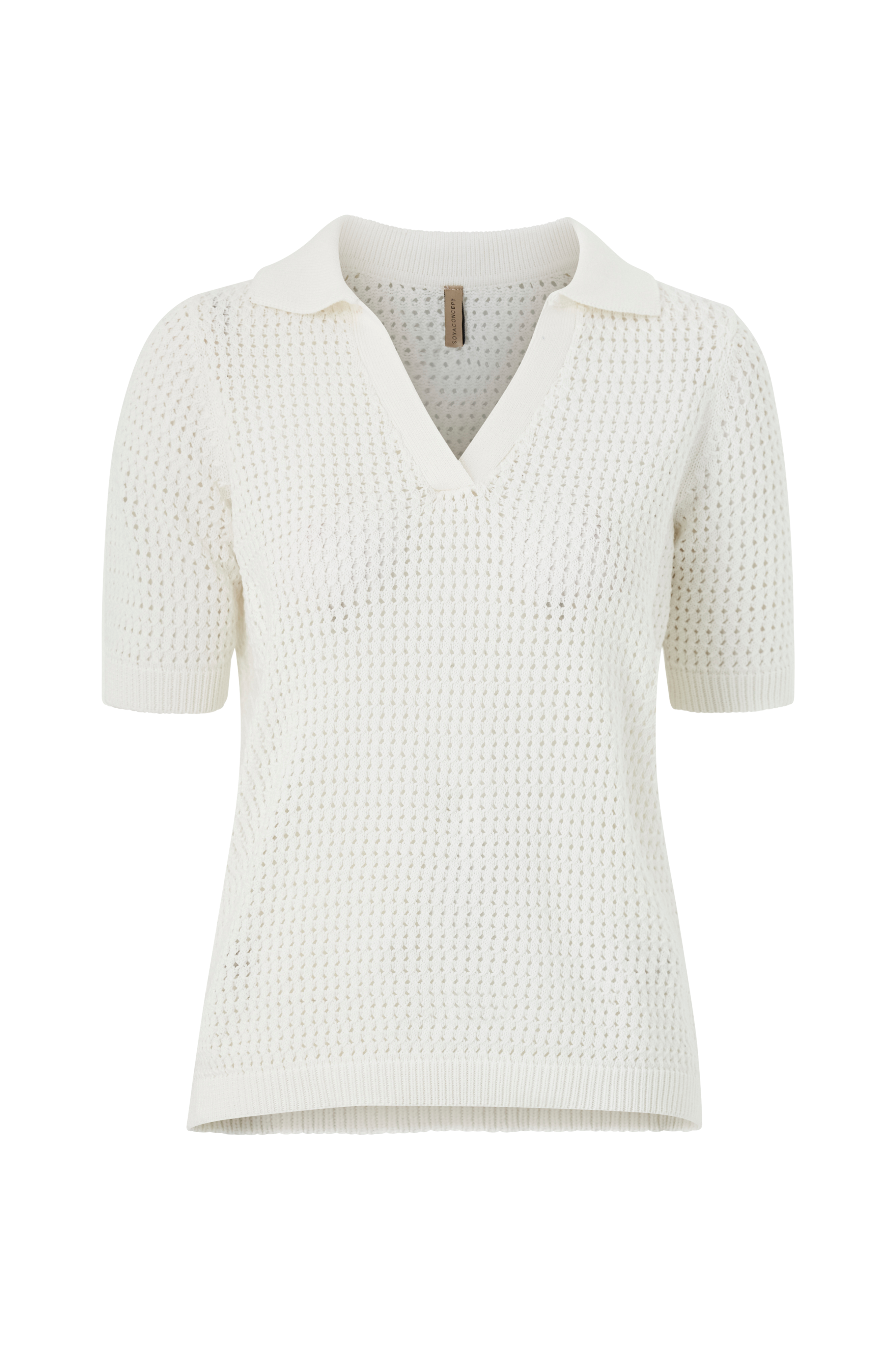 • Lige, mønsterstrikket model• Ribstrikket krave• Ventilation i halsen• Kort ærme med ribkant• Ribstrik nederst