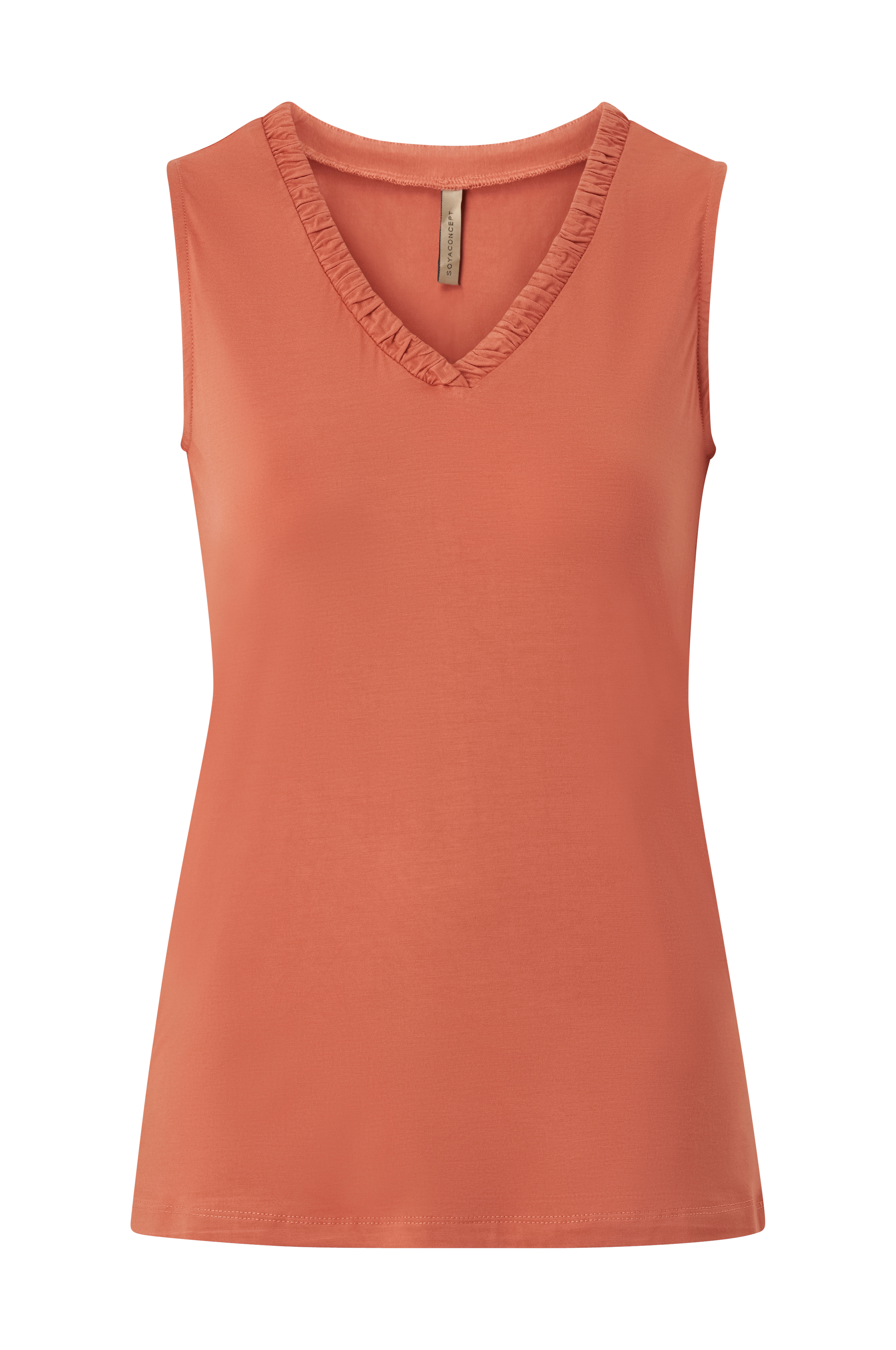 • Ærmeløs top i elastisk materiale• Rynket, v-formet halsudskæring