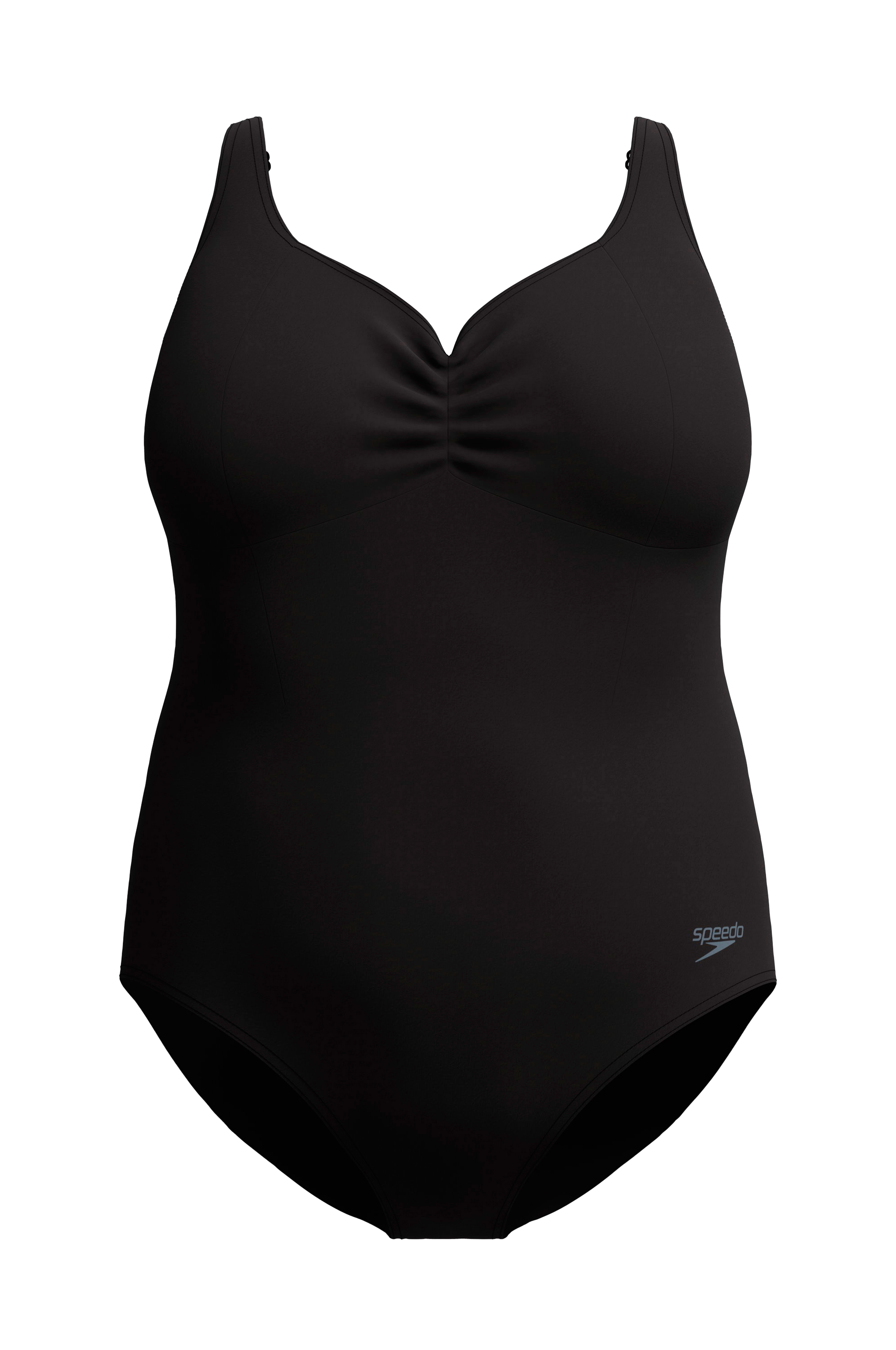 • Hjerteformet udskæring med rynkedetalje• Uforede skåle• Brede, justérbare skulderstropper• For i kopperne og ved skridtet• V-udskæring i ryggen