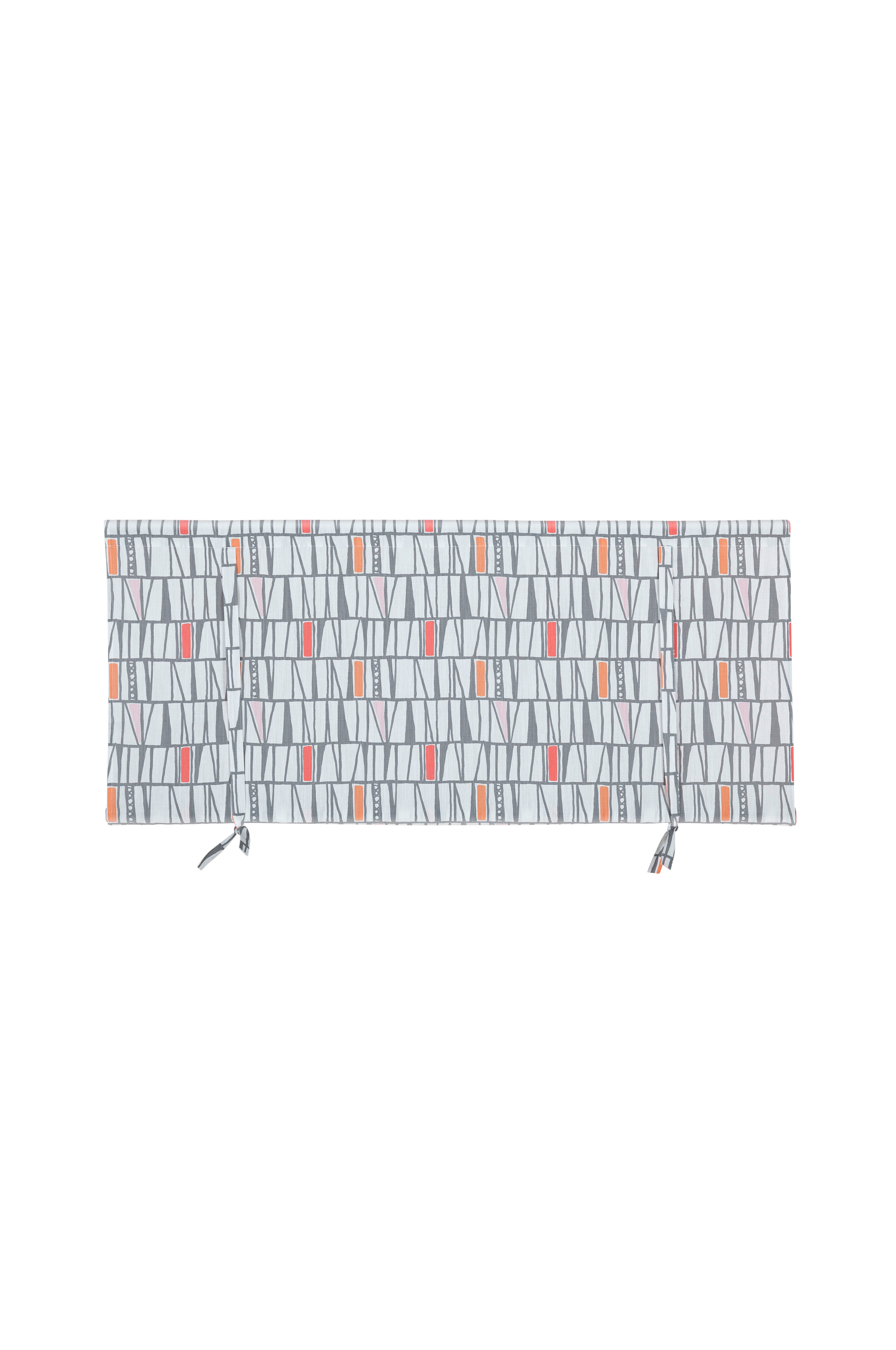 Roll-up Mosaik. To bindebånd til oprulning. Syet løbegang foroven og forneden. Længde 100 cm. 100% bomuld. 40° kulørt vask. Trædes på gardinstang. Anvend gerne en rundstok forneden (medfølger ikke)