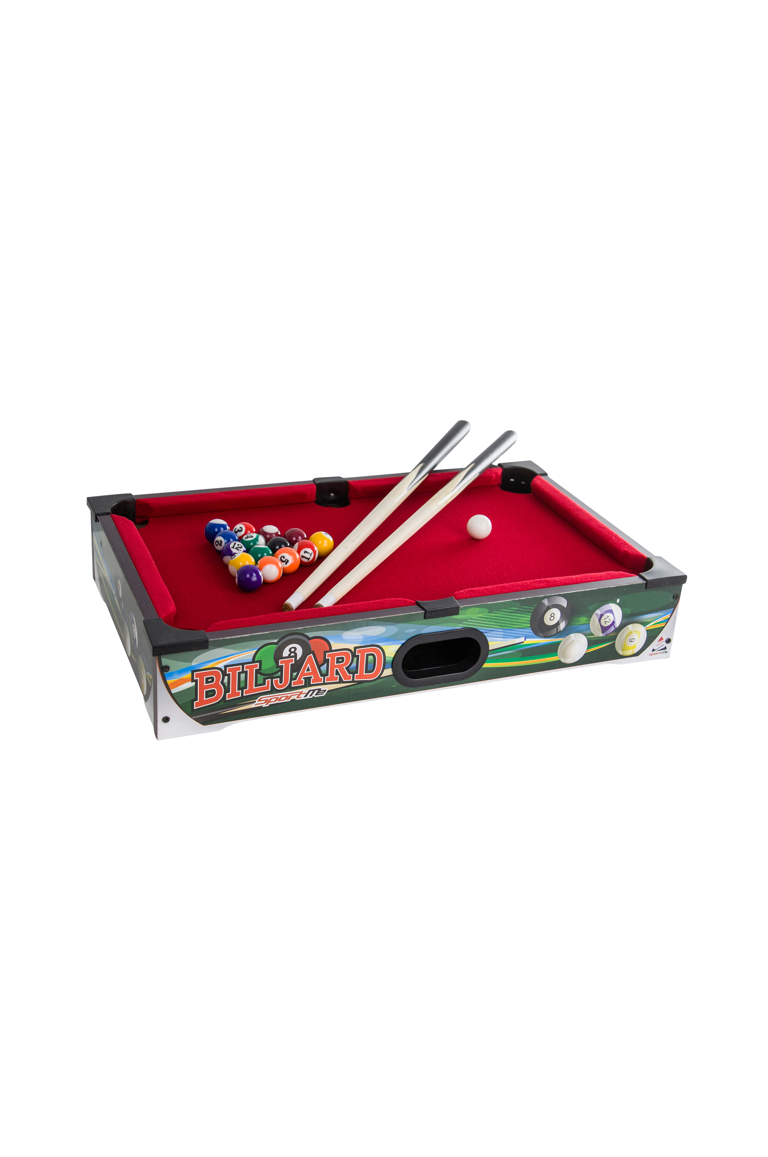 Spillebord billard, komplet med 1 billardbord, 2 billardkøer, 16 billardballer, 1 børste, 1 trekant og kridt.