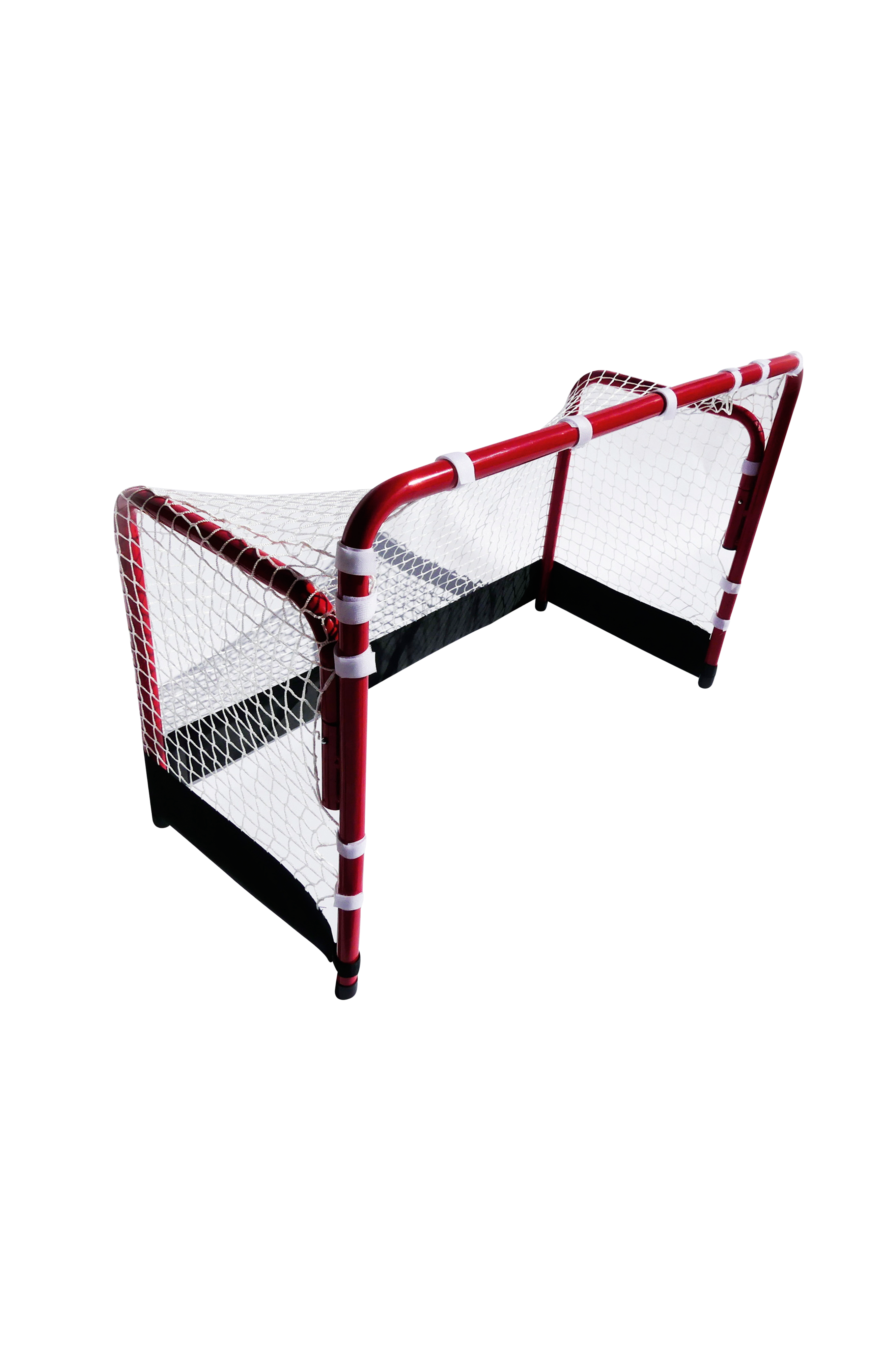 Mellemstort floorballmål med stabil metalkonstruktion. Farven er UV-bestandig og vejrbestandig til mange sjove legedage udenfor. Målet har også en sort boldstopper i bunden af nettet.