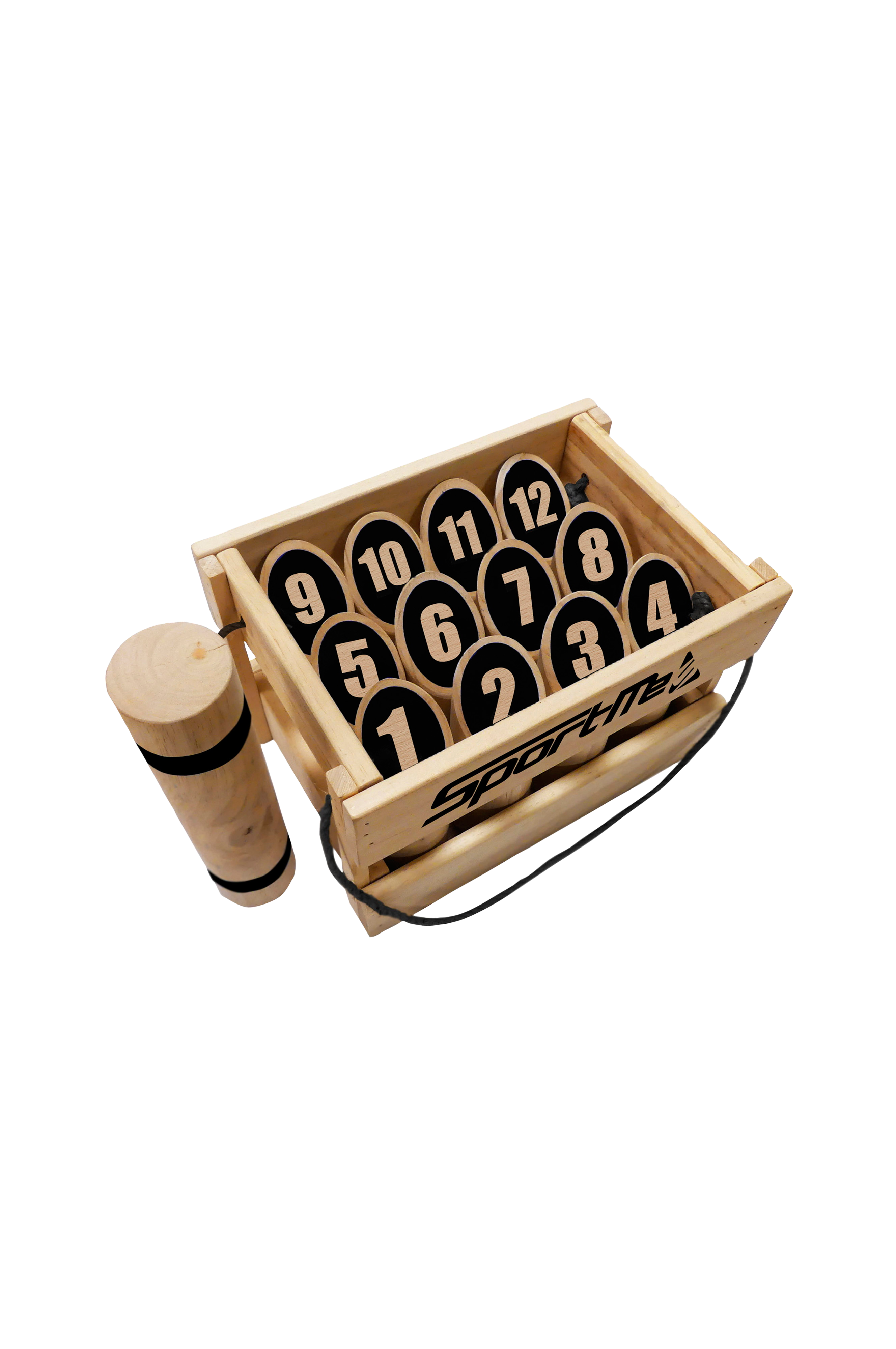 12 stk. træpinde med tal 15 x 5 cm1 kastepind 22 x 5 cmTrææske 27 x 18,5 x 17 cm