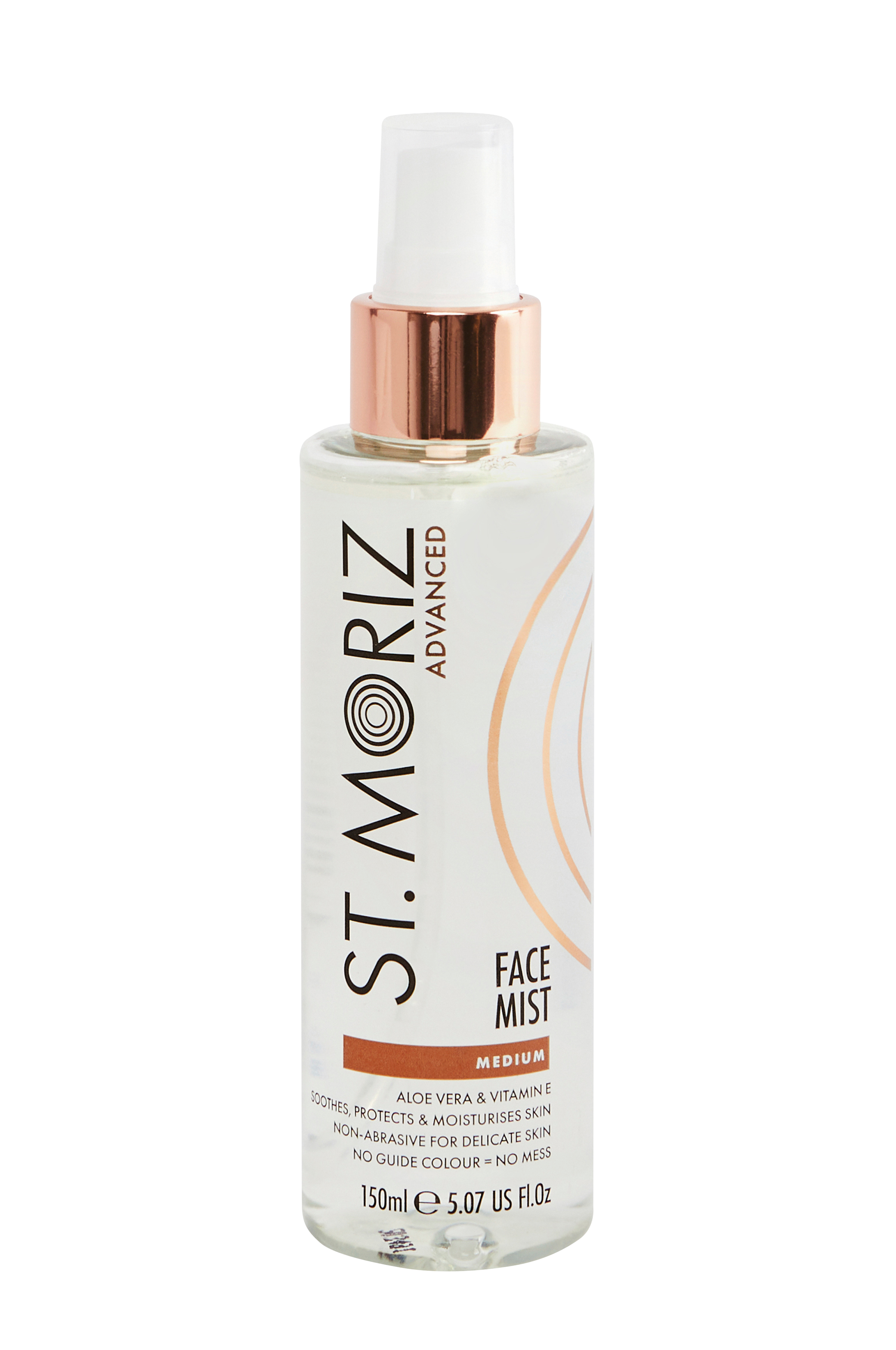 St. Moriz mild Face Tanning Mist indeholder aloe vera og E-vitamin, som hjælper med at berolige og beskytte huden mod daglig forurening, samtidig med at den giver dig en gylden og strålende hud.
