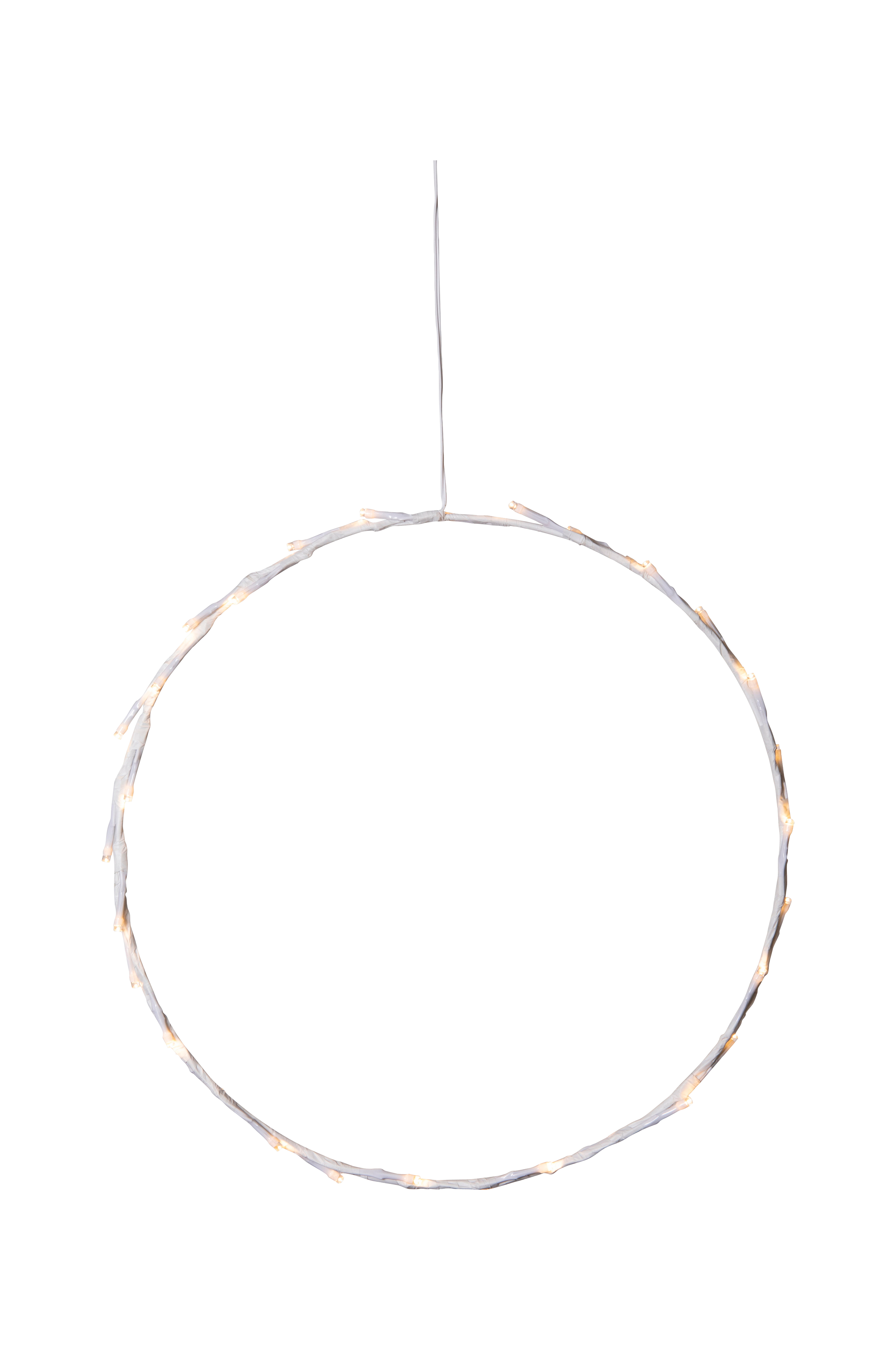Batteridrevet hvid, stilfuld og enkel ring. Små led-lyspunkter, der skinner fint i kransen. Pynt op til jul og advent eller hvorfor ikke, så snart den mørke tid begynder. Timer-funktion.