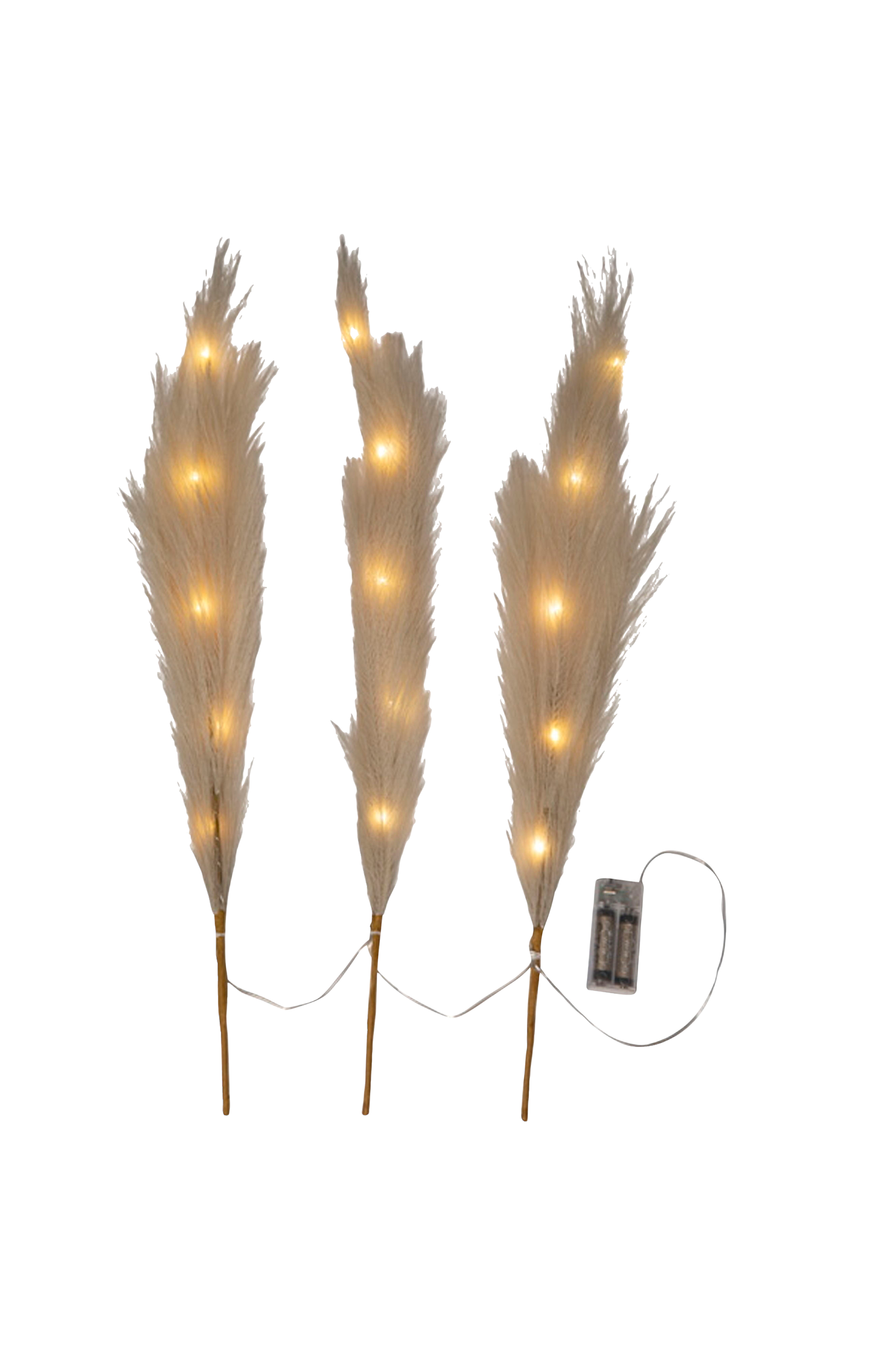 Batteridrevet indendørs dekoration med kunstige større fjer. Leveres med tre grene monteret på et kabel, hver gren har 5 lysdioder, som giver et behageligt og stemningsfuldt skær. Placer dem i et mørkt hjørne af dit hjem for at lyse op, lige så flot oplyst som uoplyst.