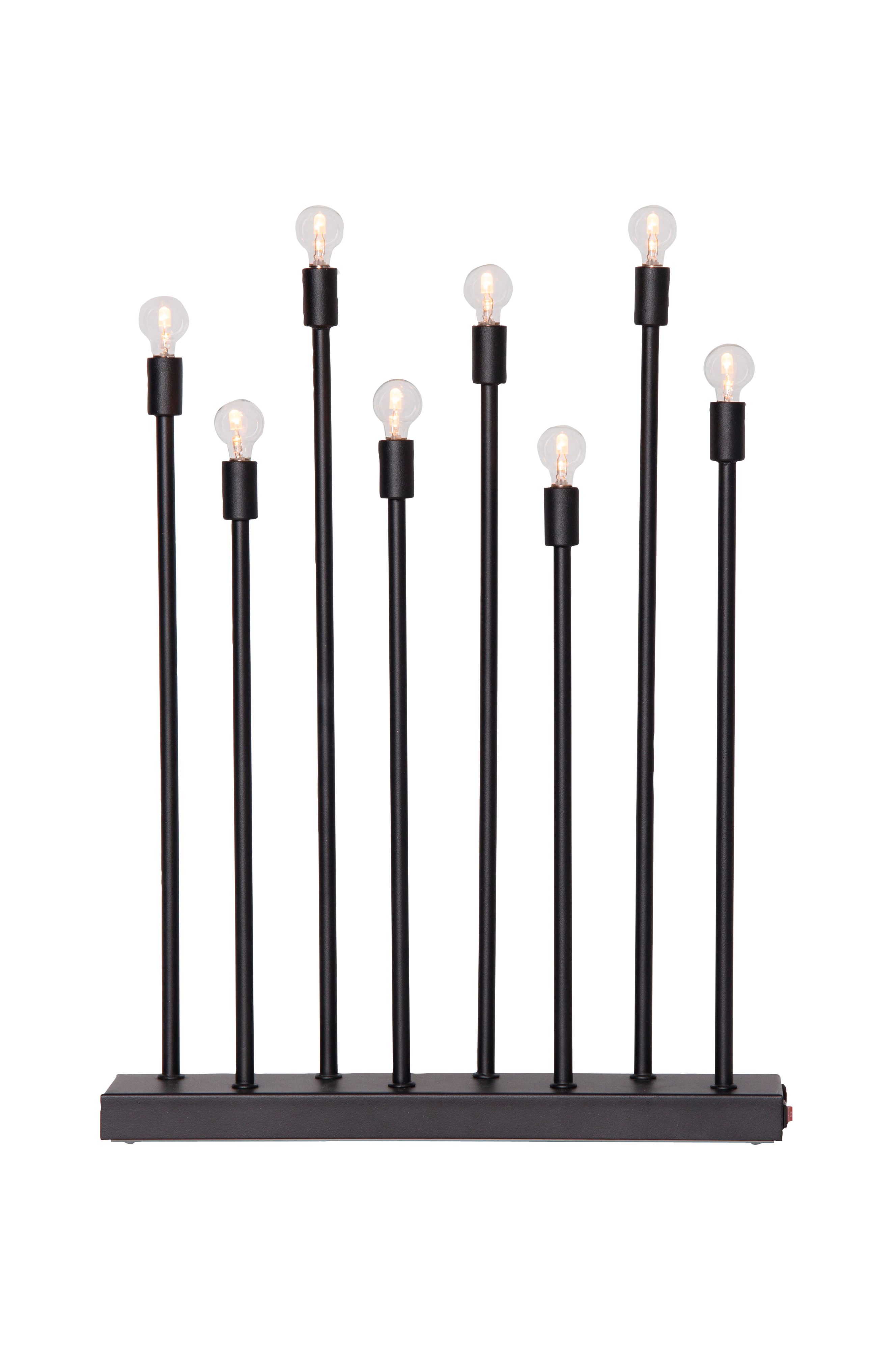 Genopladelig moderne lysestage i metal med runde led-lys, der giver et stemningsfuldt lys. Passer godt i et vindue eller på en bænk eller hvorfor ikke på et bord? Den er nem at placere, da der ikke kræves en stikkontakt i nærheden.
