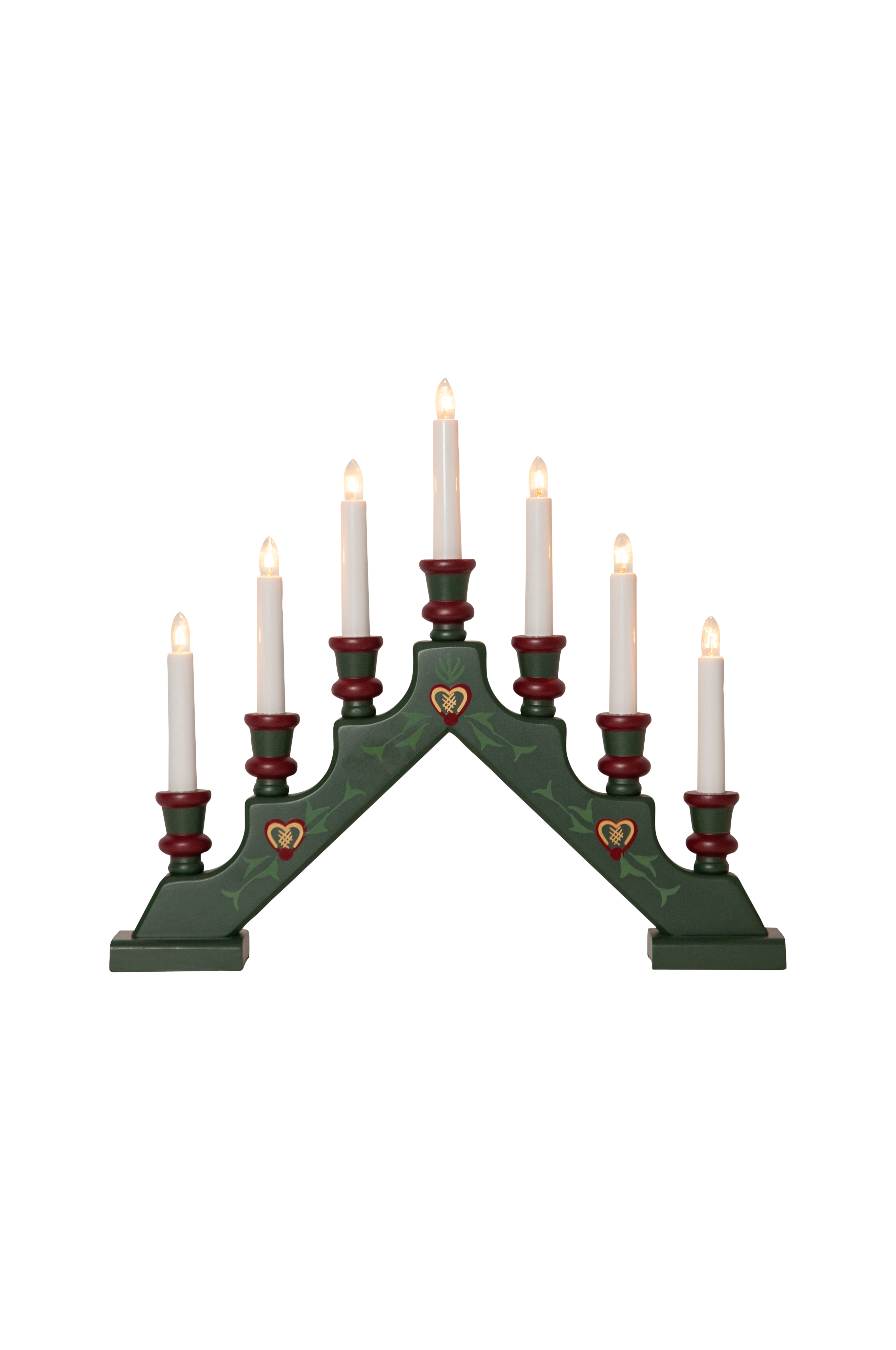 Traditionel trælysestage med fine detaljer. Med 7 lyskilder som giver en hyggelig belysning og skøn julestemning.