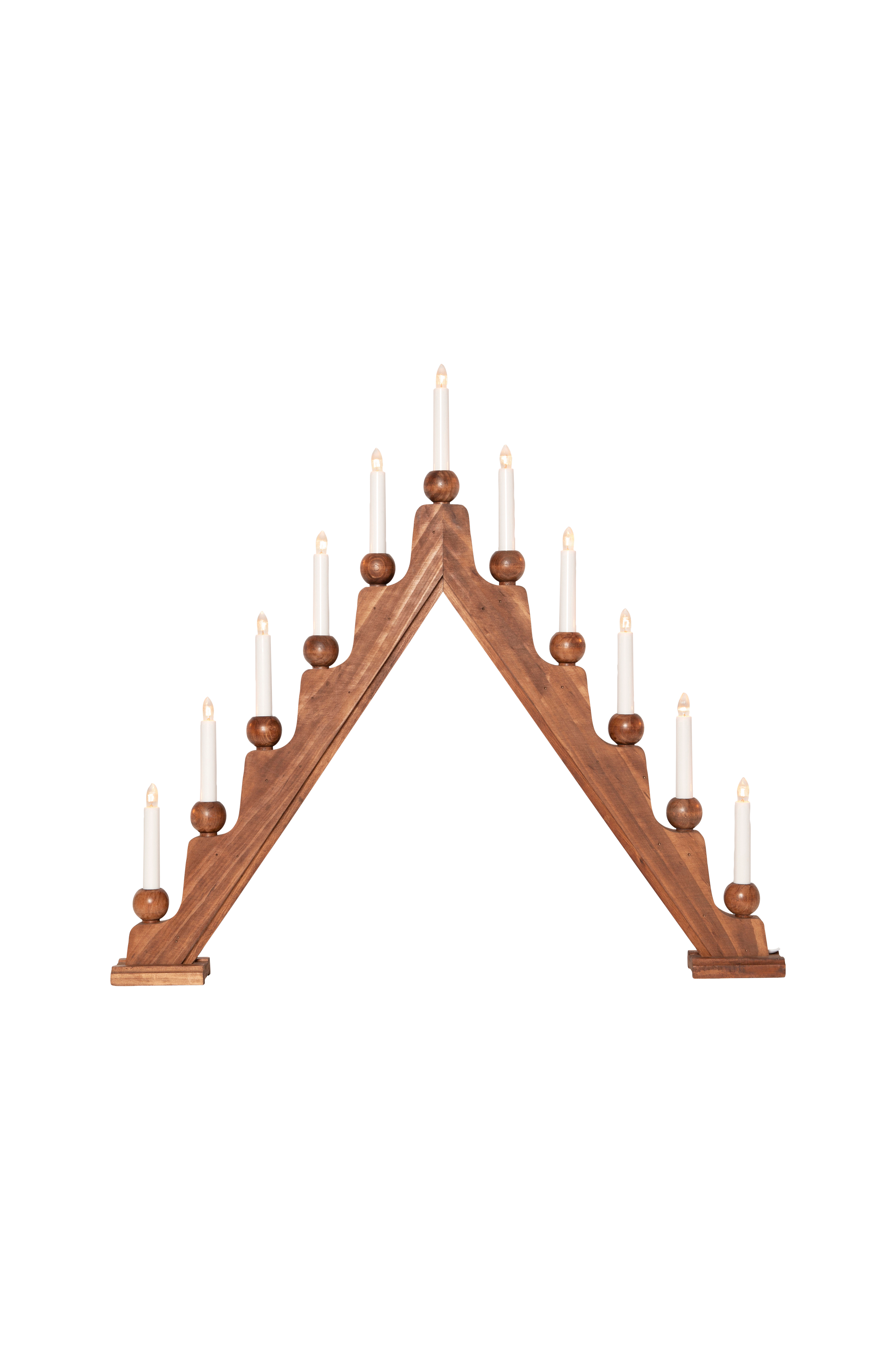 Brun trælysestage med runde lysholdere. Fin adventslysestage, der pynter op mod jul. Lysetagen har 11 pærer.