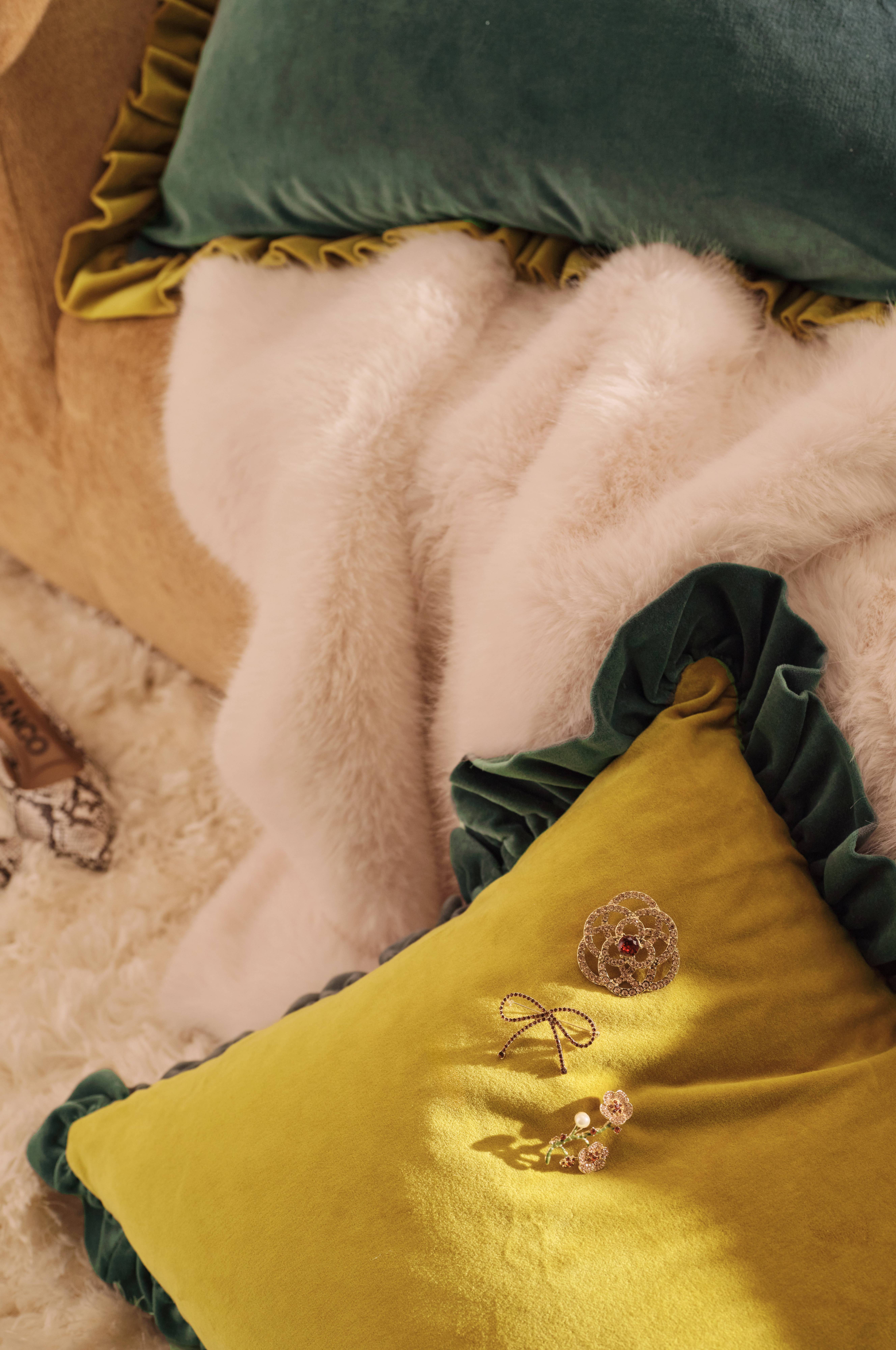 Dekorative og alsidige brocher til dit hjem. Pynt f.eks. en pude, en plaid eller hvorfor ikke et gardin. Brocherne fungerer godt både sammen i grupper på tre eller hver for sig.