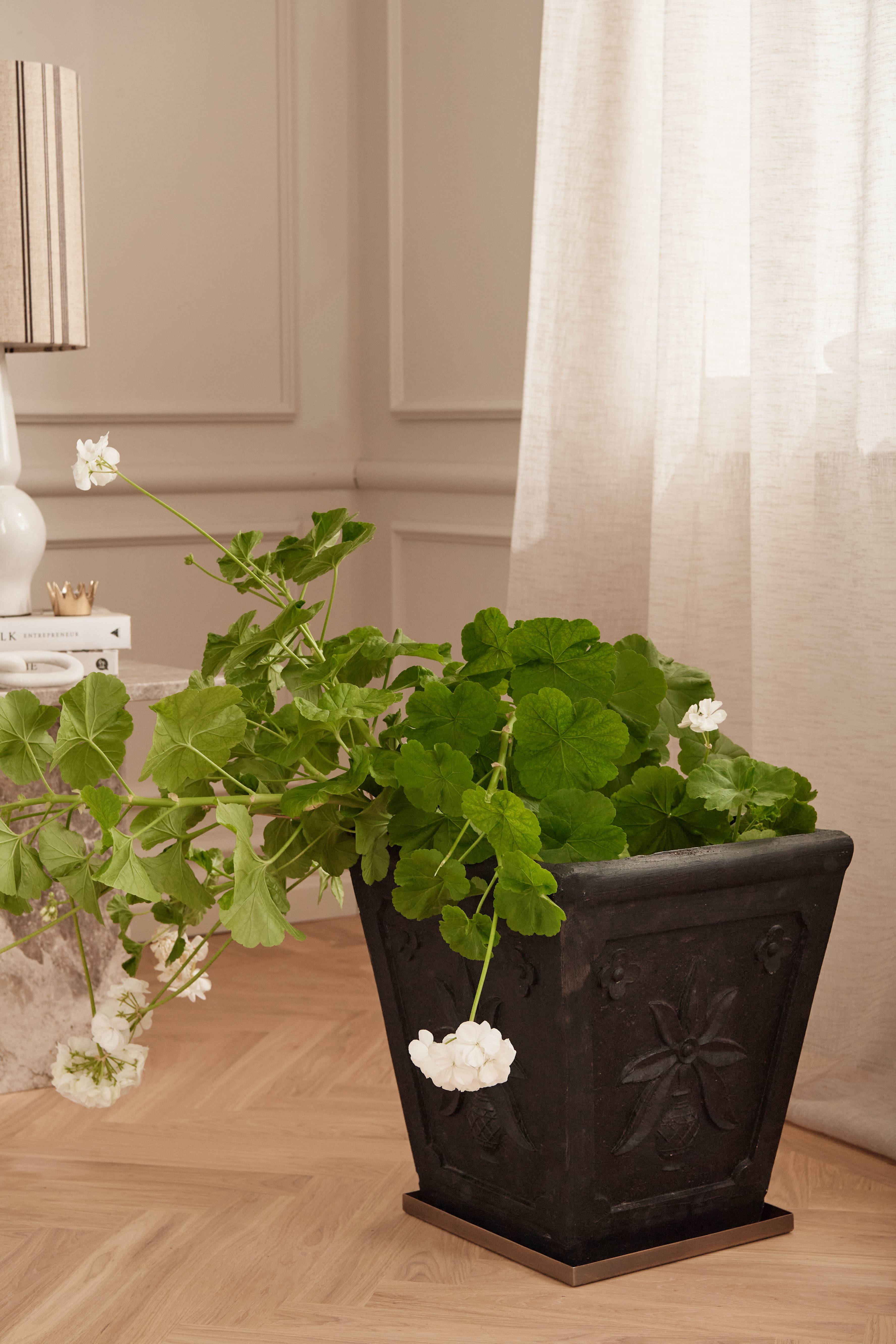 Håndlavet krukke af terrakotta med blomstermønster. Tåler frost (kan anvendes udendørs). Hul i bunden, så den skal stå på en underskål, hvis den anvendes indendørs.