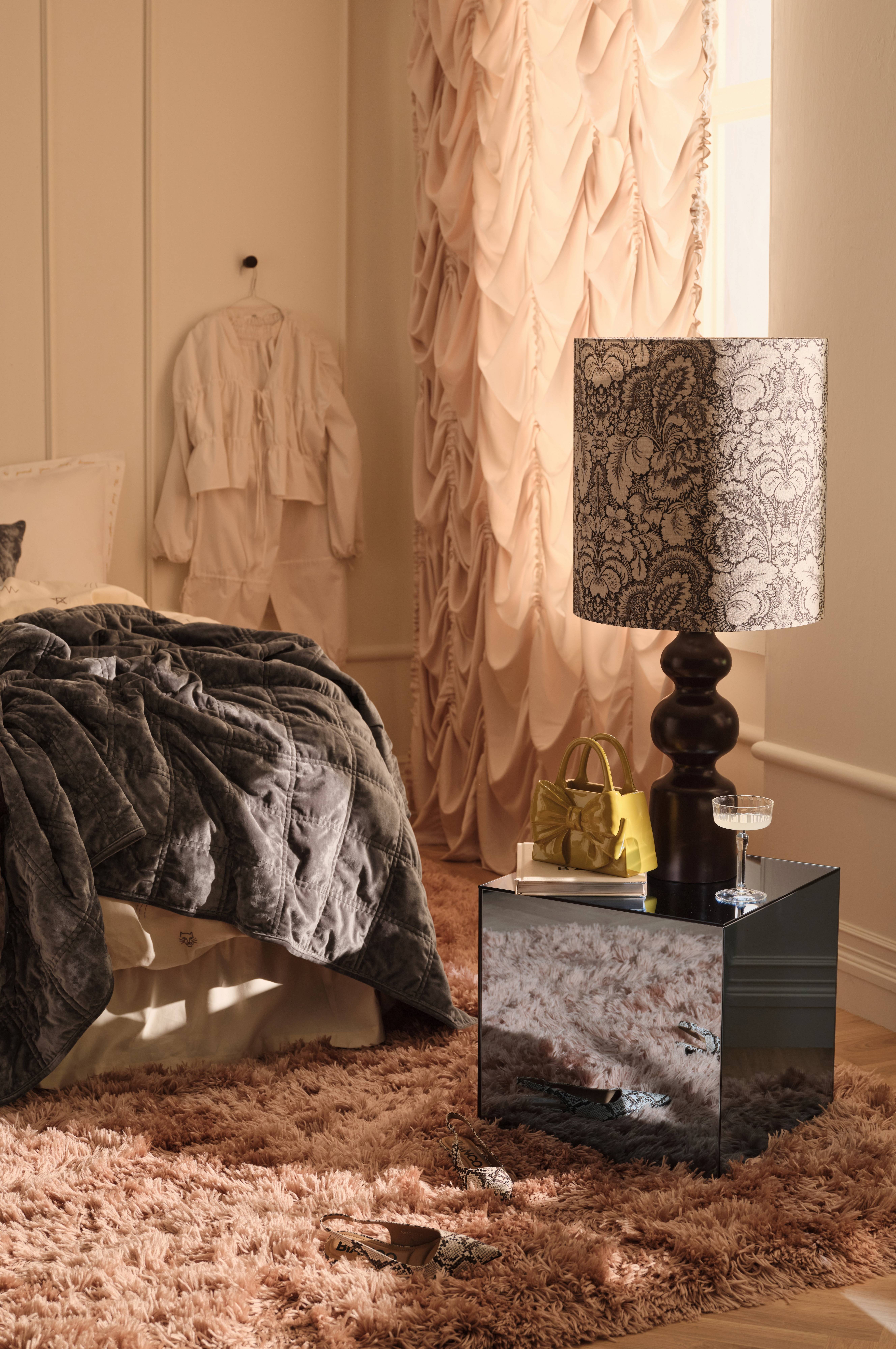 • Cylindrisk lampeskærm med printet mønster• Fremstillet af hørstof• Beslag E27