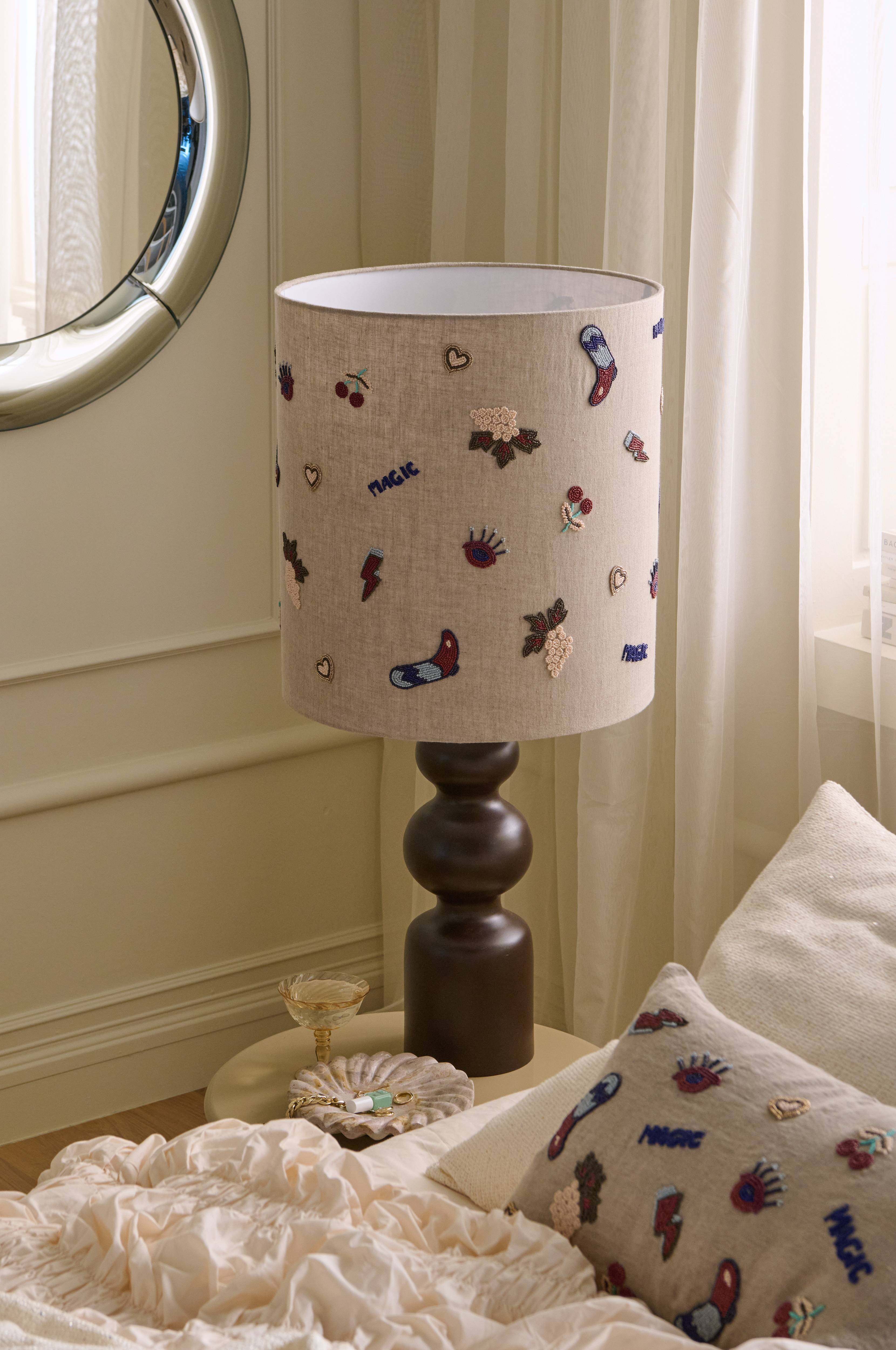 • Håndlavet lampeskærm i hørstof med glasperler