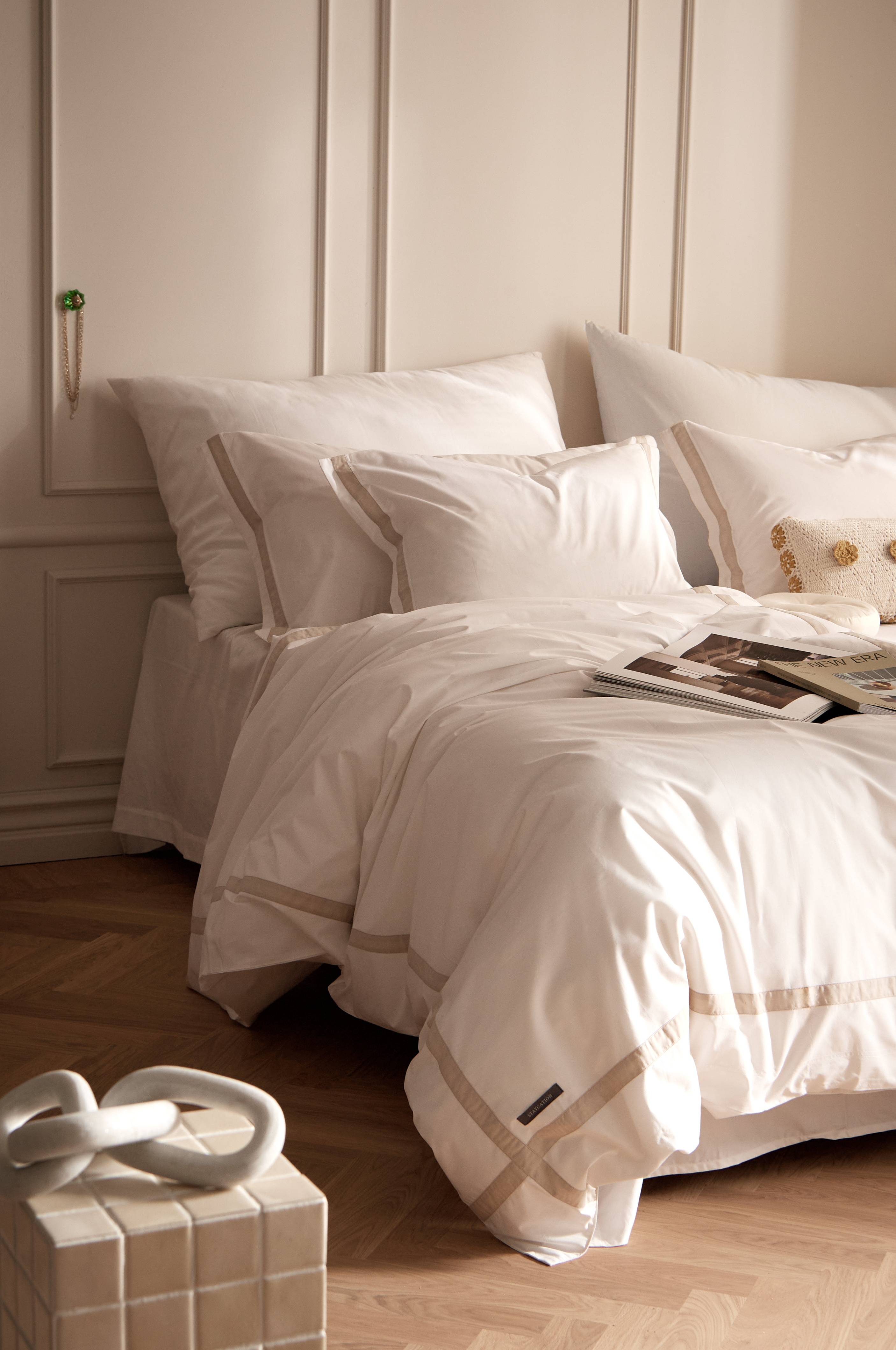 • Påsyede bånd hele vejen rundt om dynebetrækket og på de korte sider af pudebetrækket.