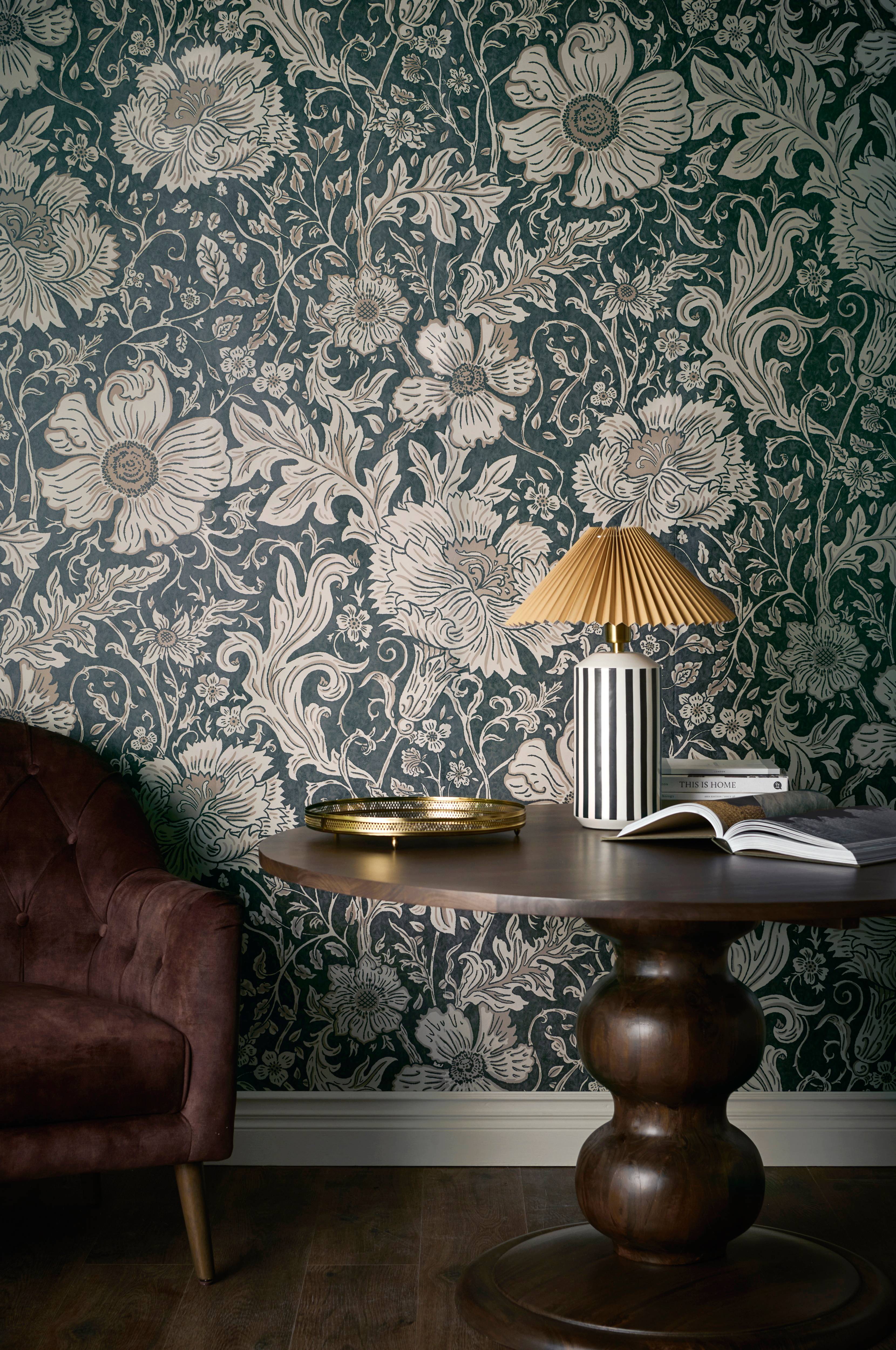 Tapet i non-woven-materiale med digitalprintet mønster. En rulle indeholder 4 baner som er 45 cm brede og 2,7 m lange. 1 rulle dækker ca. 5,4 m2. Fremstillet i Sverige, repeterbar.