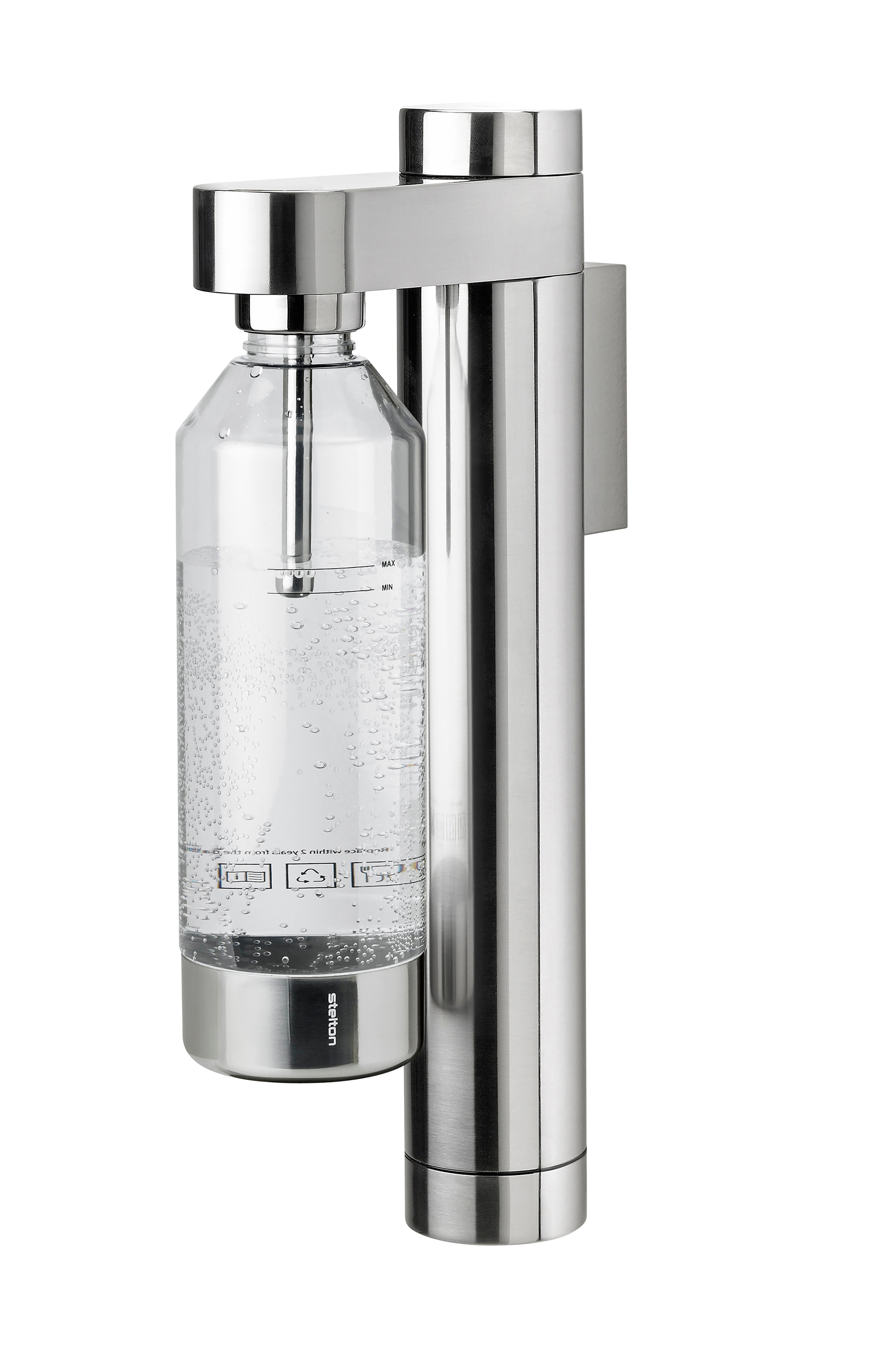 Steltons vægmonterede Brus kombinerer smukt design med miljøvenlig funktionalitet. Lav din danskvand eller sodavand i genanvendelige flasker, og reducer dit plastikforbrug. Den elegante sodavandsmaskine er designet af Søren Refsgaard, som er kendt for sit rene og funktionelle design, hvor det overflødige er elimineret. Brus' cylindriske former, der er inspireret af Steltons klassiske designtradition, ses tydeligt i den slanke beholder til kulsyrepatronen og den intuitive kulsyreknap. Den vægmonterede Brus sparer plads på køkkenbordet og leveres altid med en flaske, der supplerer designet. Gør din hverdag smuk og bæredygtig med denne elegante kulsyremaskine.