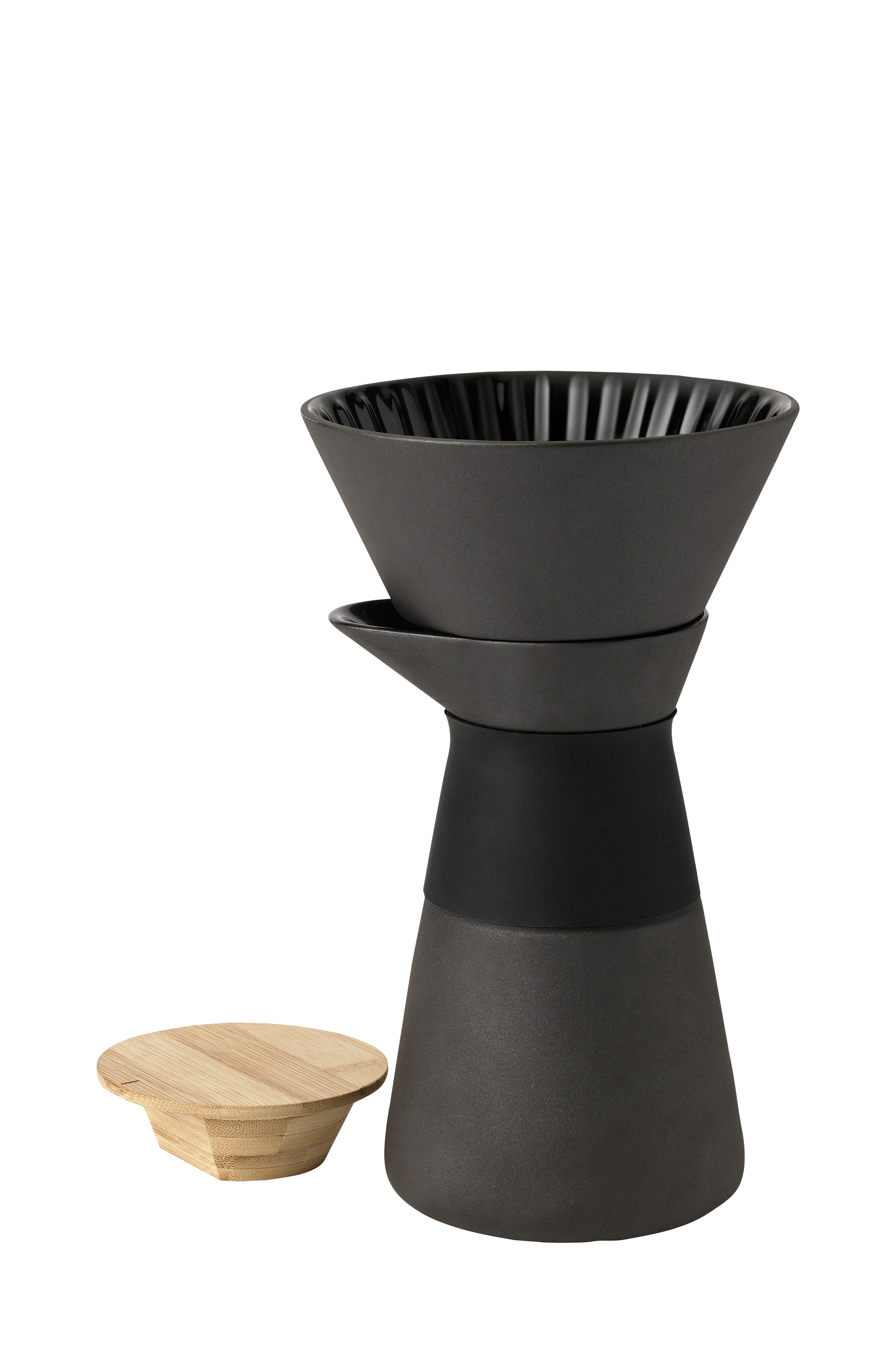 Kaffebryggeren Theo er både rustik og elegant. Fremstillet af stentøj med glinsende glasur på indersiden og et låg af bæredygtigt, asiatisk bambus. Filtertragten har tre huller i bunden hvilket forlænger bryggetiden.