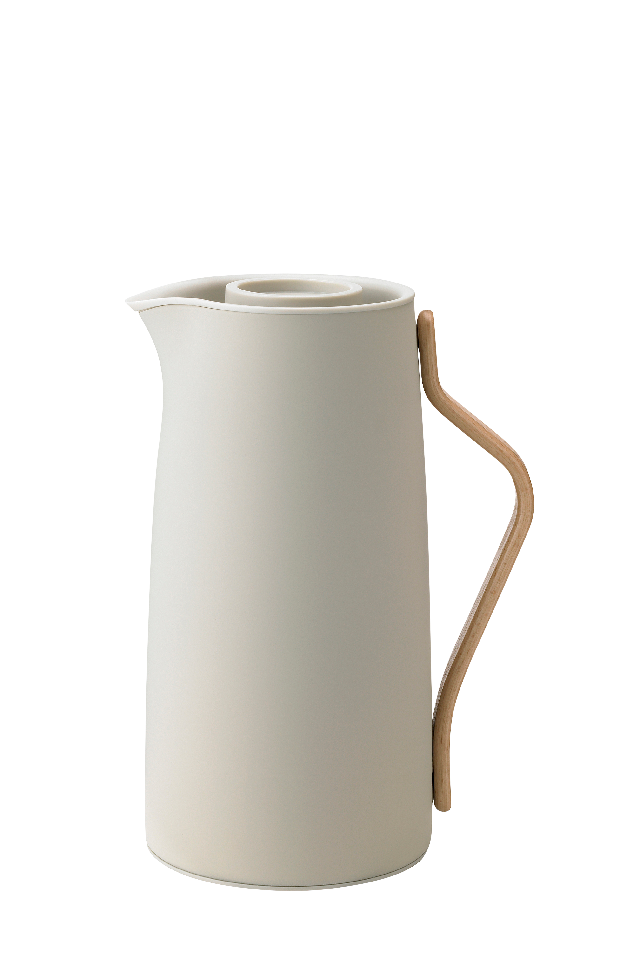 Moderne termokaffekande i stål med et håndtag af skandinatisk bøgetræ. Den isolerende stålindsats holder kaffen varm i timevis og rummer 1,2 liter kaffe. Med et praktisk kliklåg er Emma nem at bruge med kun én hånd.