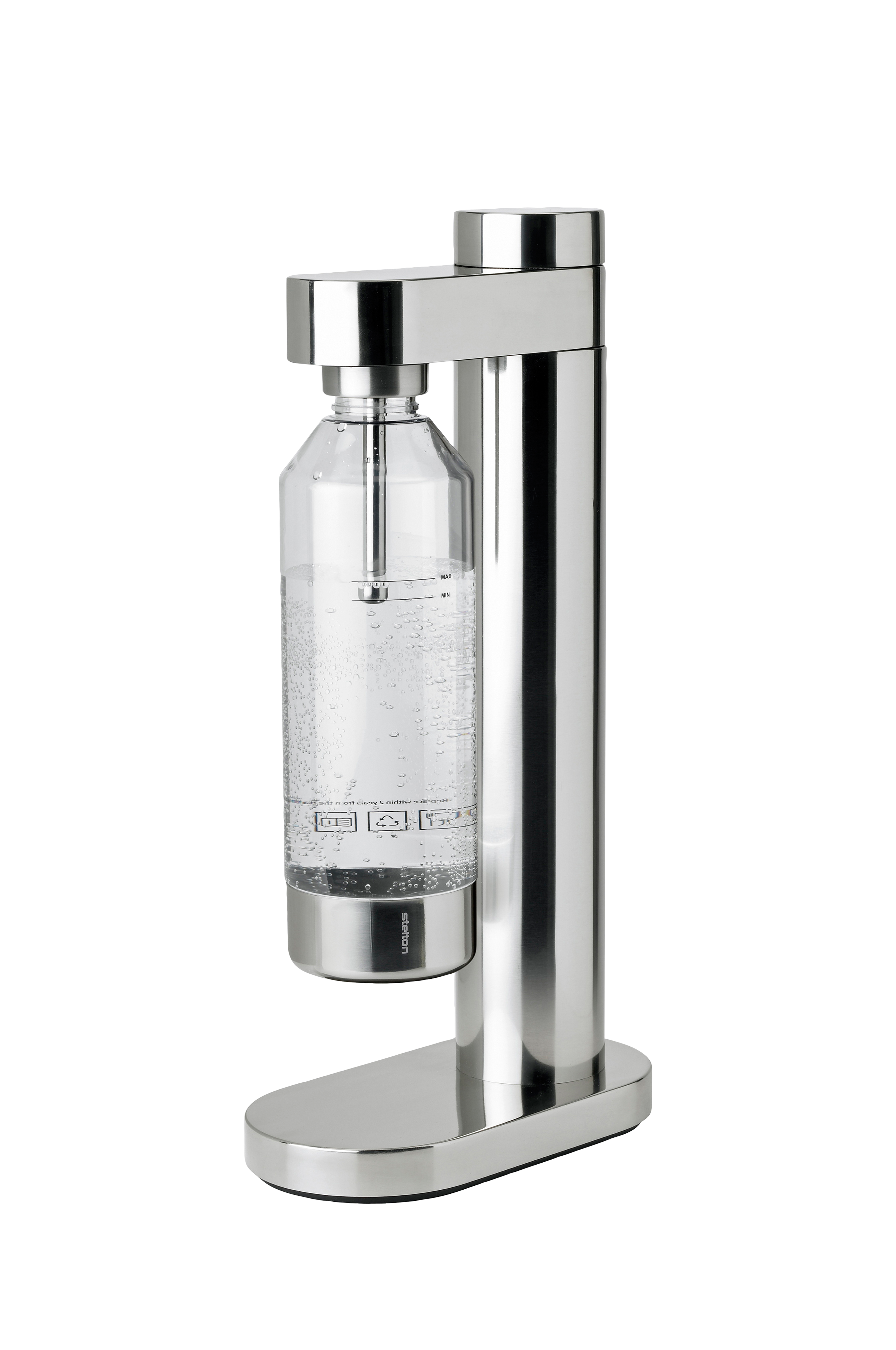 Med Brus sodanvandsmaskinen sparer du miljøet for store mængder unødvendig plastik ved at lave dit eget kulsyreholdige vand eller sodavand på genanvendelige flasker. Sodavandsmaskinens design er så elegant, at du med glæde vil vise den frem på køkkenbordet. Designeren bag, Søren Refsgaard, er kendt for sit rene og funktionelle design, hvor alle overflødige elementer er fjernet. Brus er et særligt godt eksempel på dette. Designet er baseret på de cylindriske former, der er klassiske for Steltons produkter. Den cylindriske form bemærkes først på den ultratynde beholder til kulsyrepatronen og vender tilbage i kulsyreknappen, som du intuitivt kan dreje med uret for at justere mængden af kulsyre, og mod uret for at løsne flasken fra maskinen. Sodavandsmaskinen leveres med den tilhørende Brus flaske.