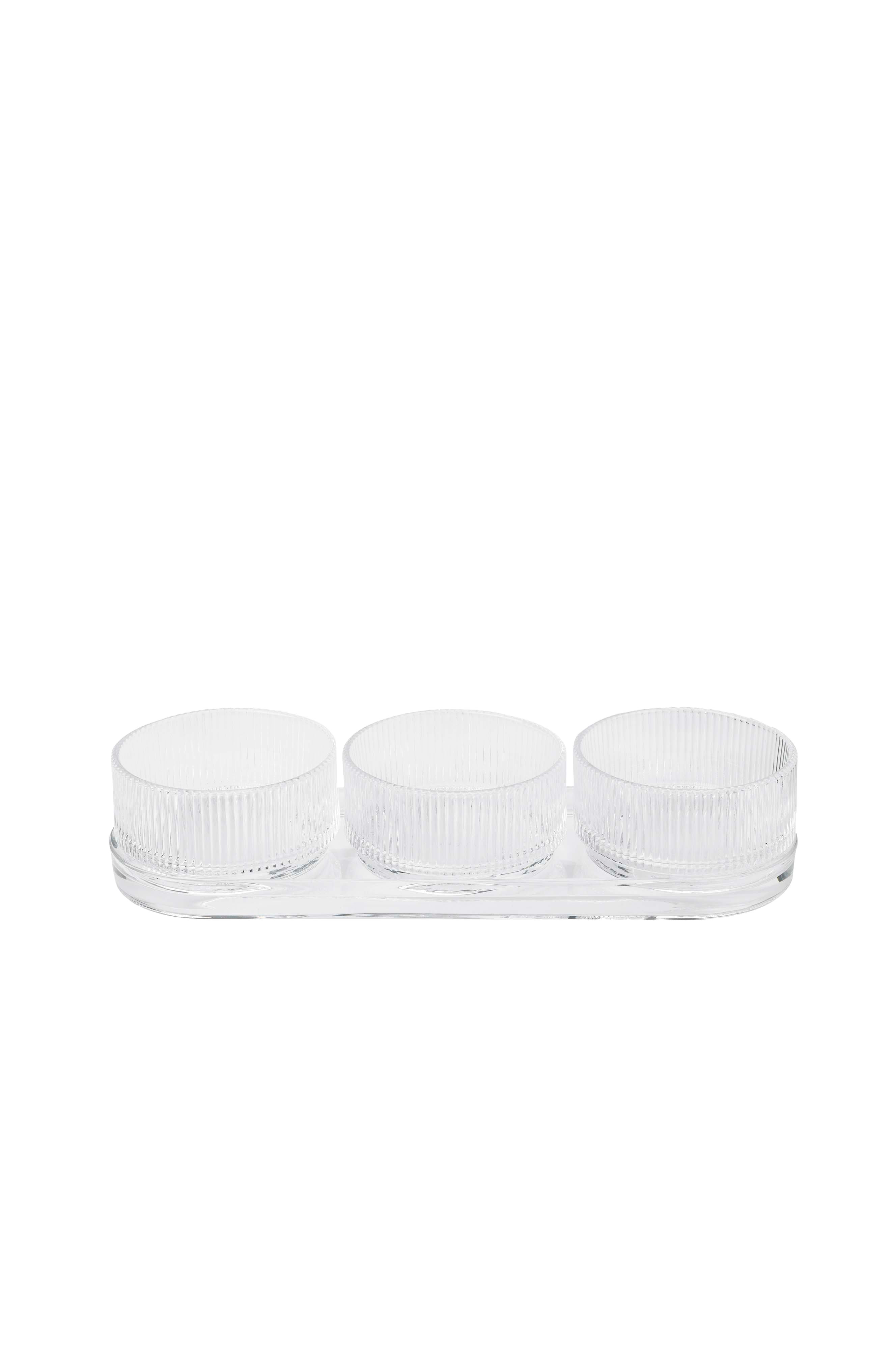 Pilastro tapassæt med rillet struktur består af tre skåle og et fad. Pilastro-kollektionen er inspireret af den elegante, funktionelle art deco-stil fra 1920'erne, og delene passer fint ind i de fleste moderne hjem. Det rillede design ser elegant ud med det meste service. Skålene og fadet kan også bruges separat. Fadet kan f.eks. bruges som bakke til hudplejeprodukter, mens skålene er perfekte til smykker, nøgler, bloklys eller fyrfadslys. Skålene kan også bruges til portionsanrettede desserter. Tapasskålene har en diameter på 10 cm og kan stables. Tapassættet matcher de andre dele i Pilastro-kollektionen. Sammen skaber de en perfekt borddækning.