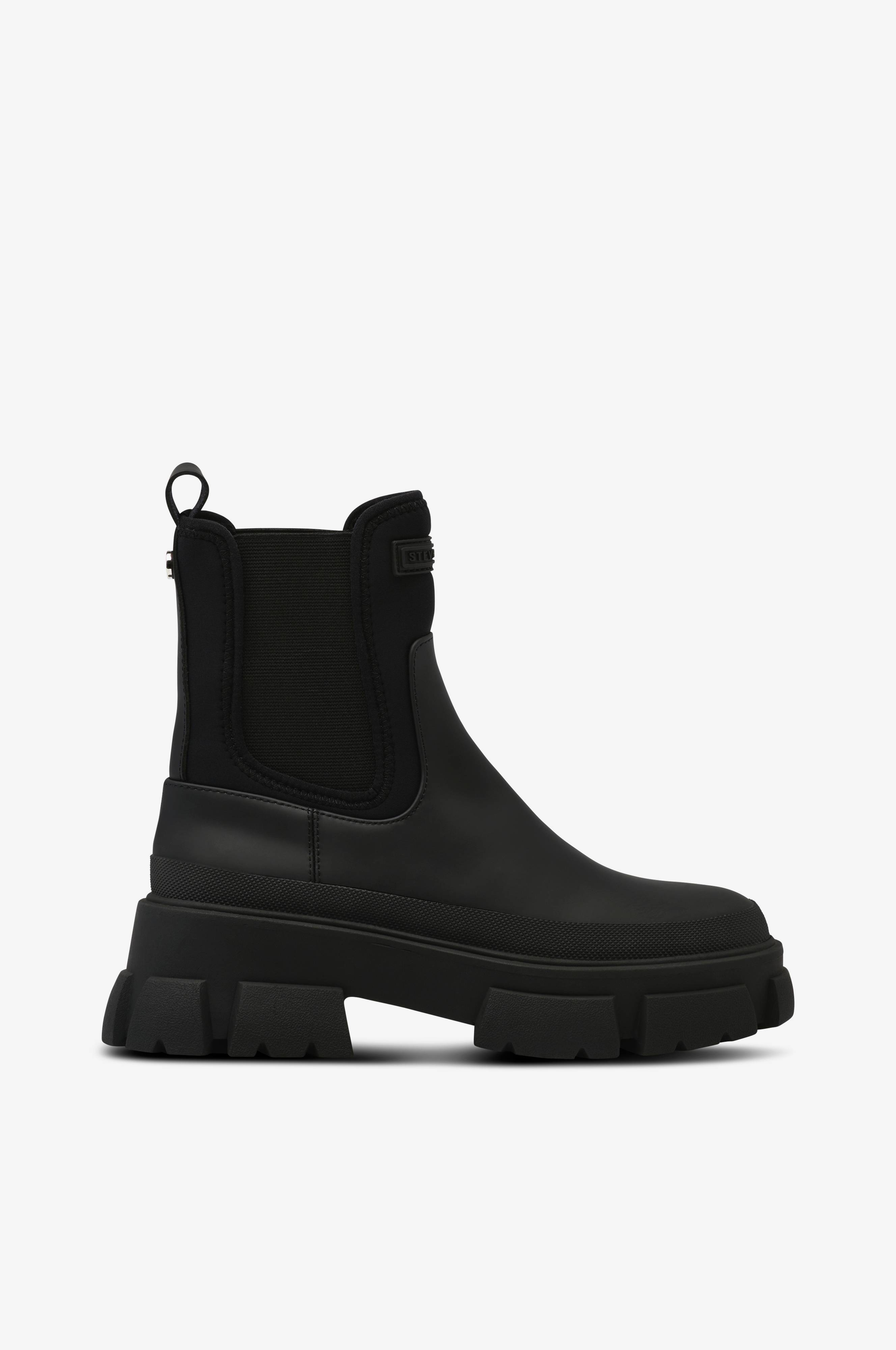 • Boots i imiteret læder• Skaft i neopren med elastiske paneler• Grov sål• Skafthøjde: 15 cm i str. 37• Hælhøjde: 5,5 cm