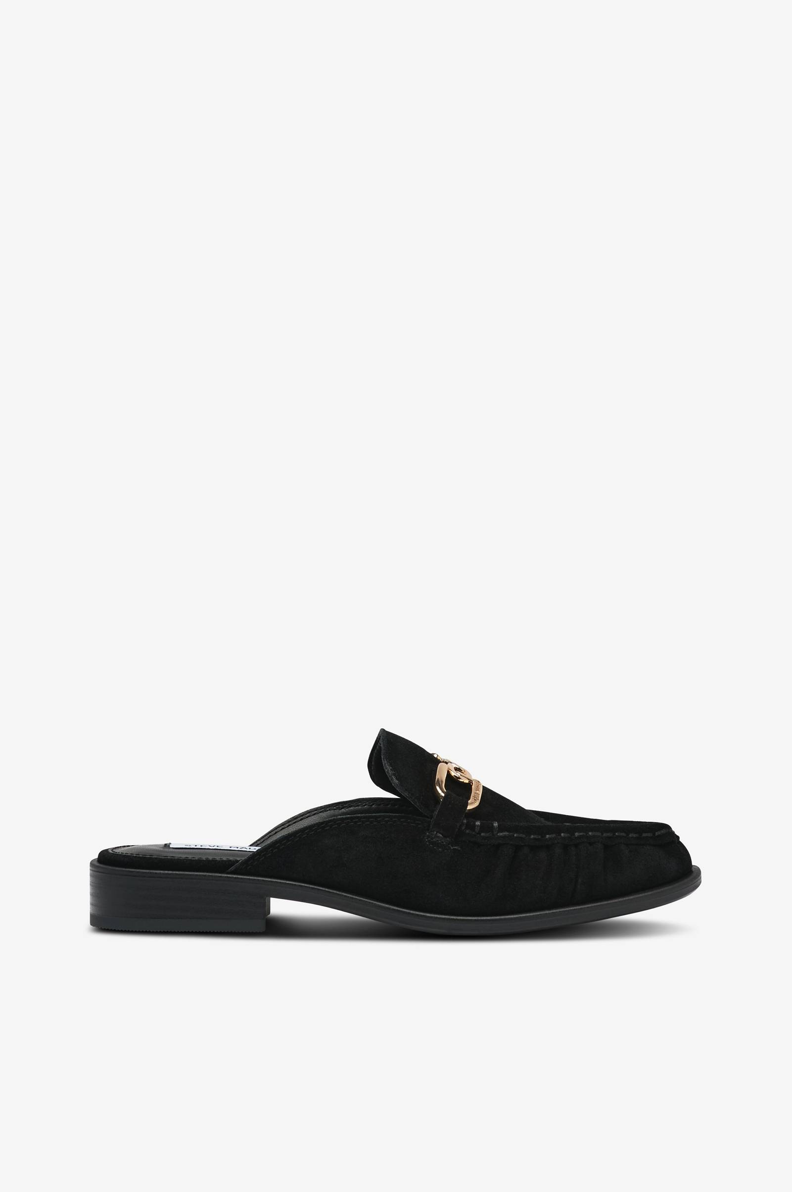 • Øvredel i ruskind med guldfarvet spænde over foden• For i PU• Blød polstret indersål• Ydersål i gummi