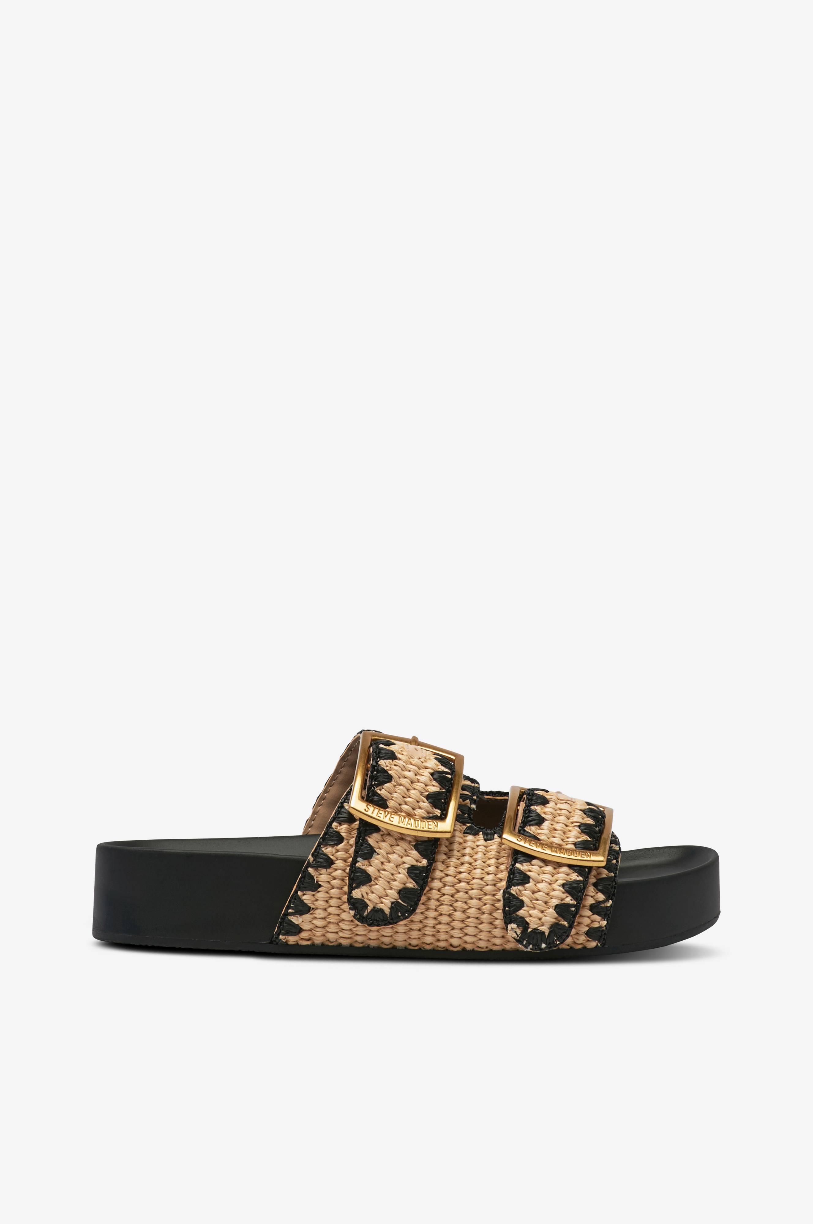 • Sandaler i raffia• To justérbare remme med guldfarvede spænder i metal• Formet fodseng• Ydersål i gummi