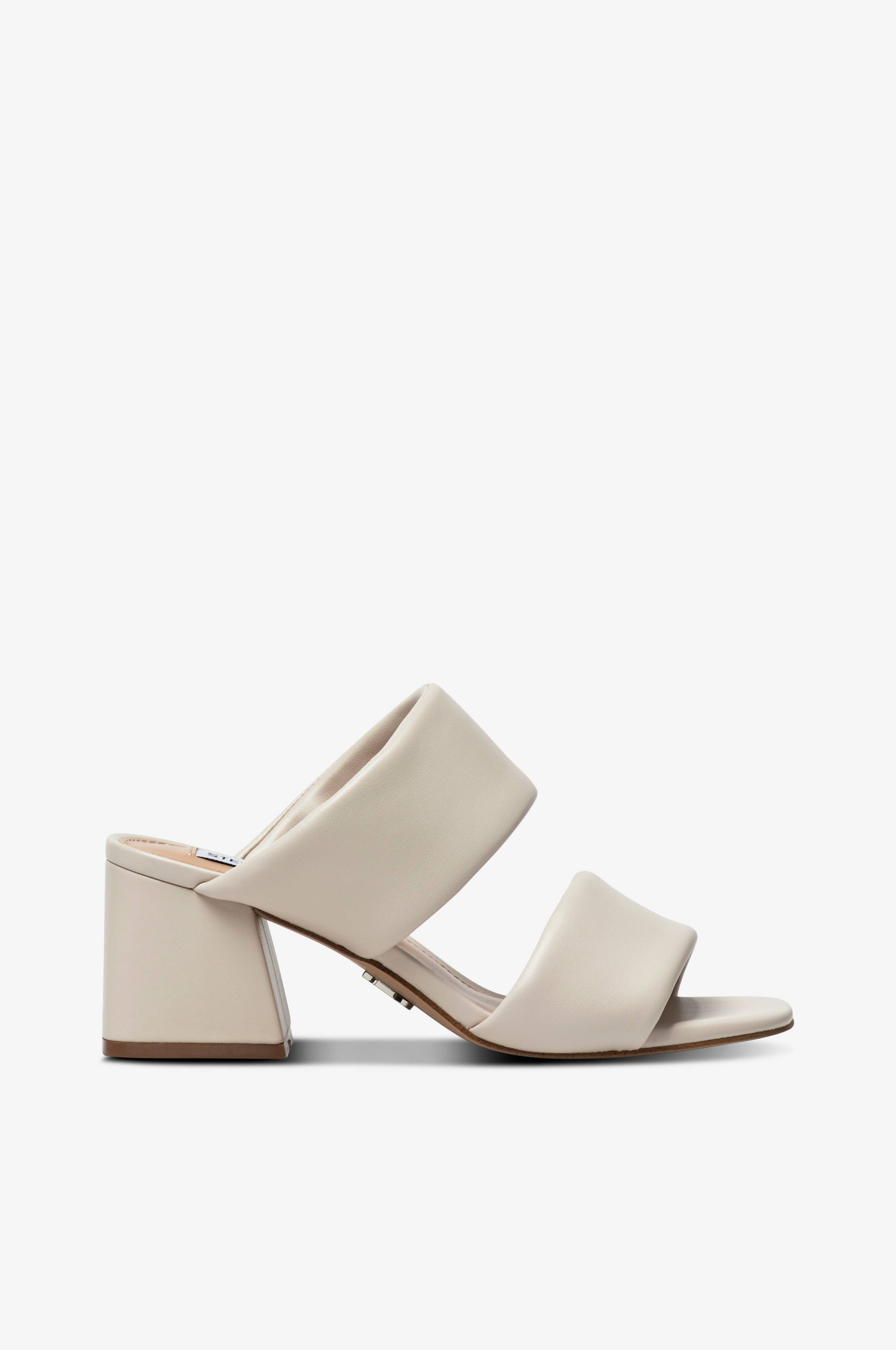 • Brede, forede remme over foden• Blokhæl• Fremstillet af imiteret læder• Hælhøjde: 6,5 cm