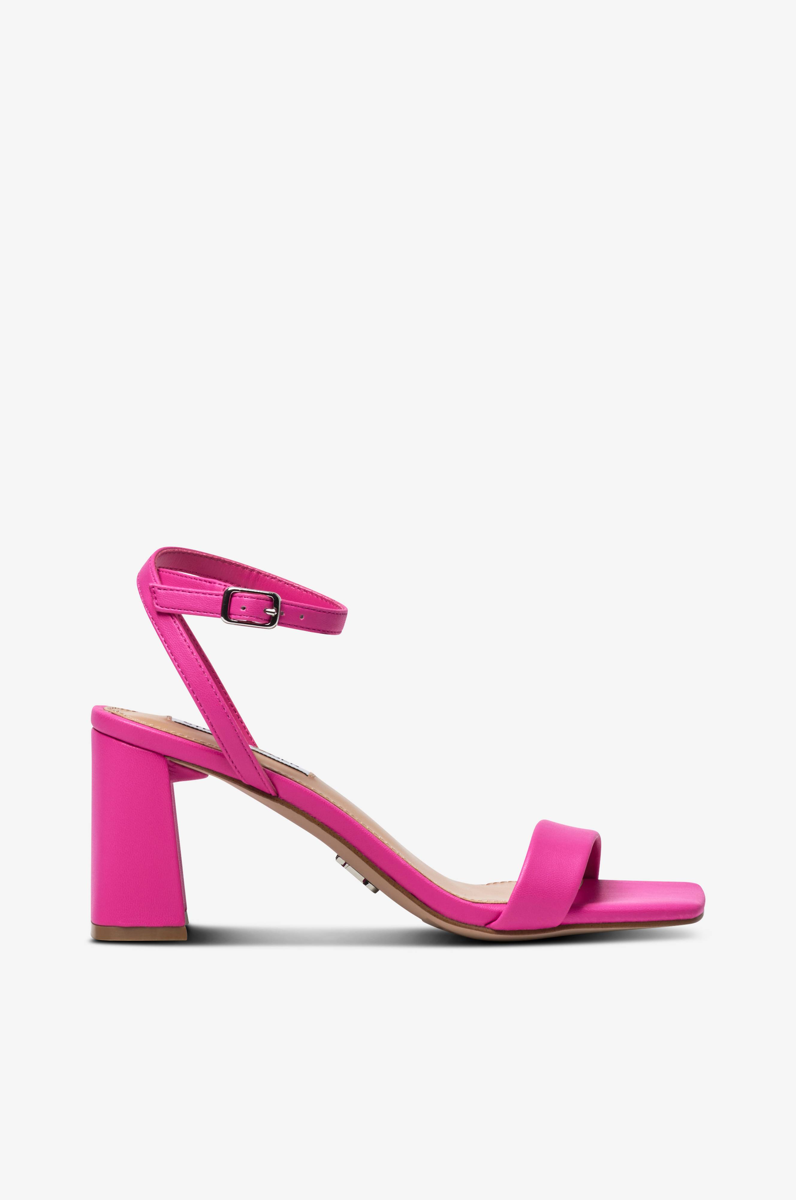 • Sandaler i imiteret læder• Firkantet tåform• Beklædt blokhæl• Ankelkæde med metallukning på siden• Hælhøjde: 7,5 cm