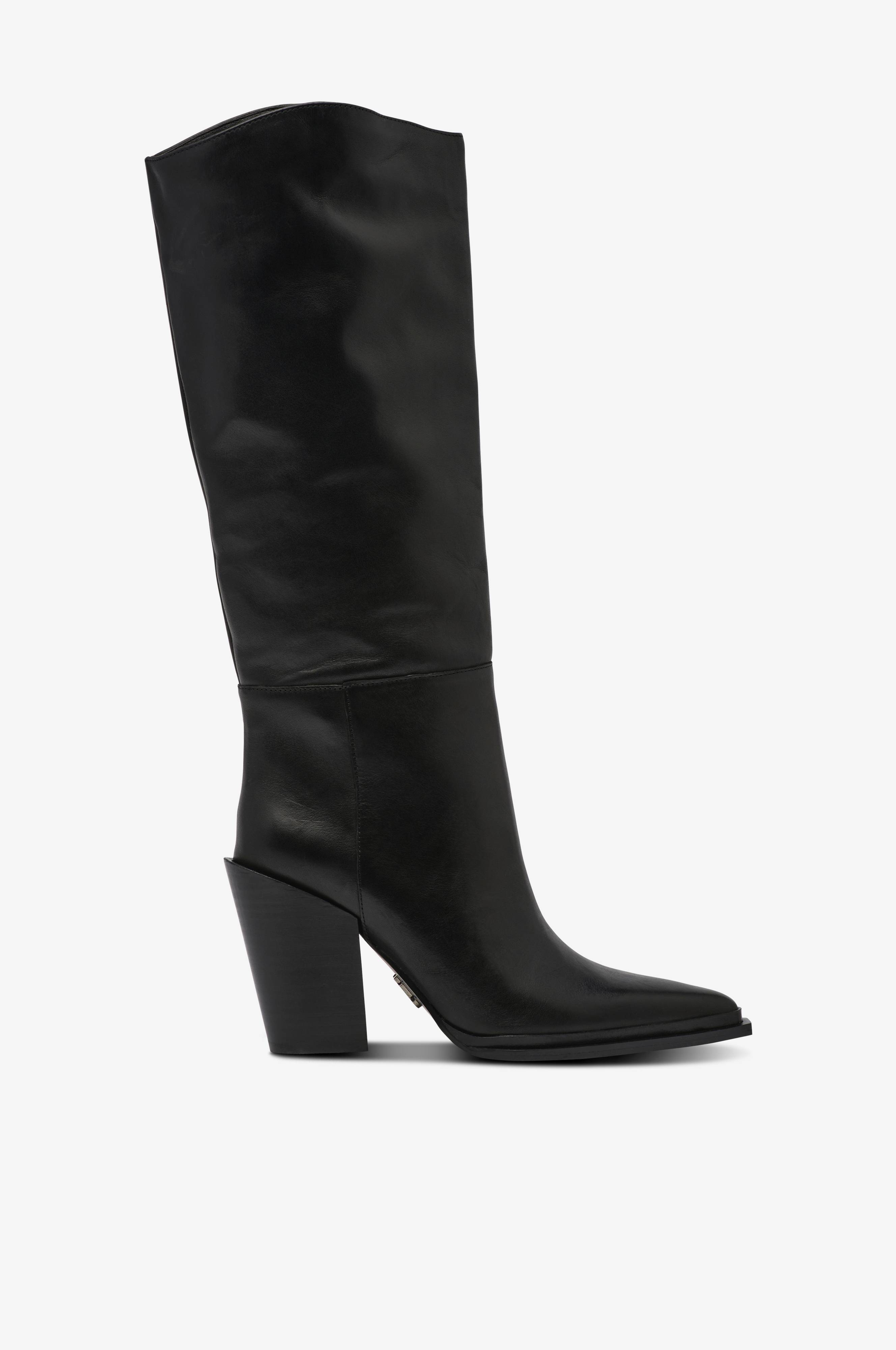 • Model i læder• Spids snude• Tekstilforing• Skafthøjde: 33,5 cm i str. 37• Hælhøjde: 9,5 cm