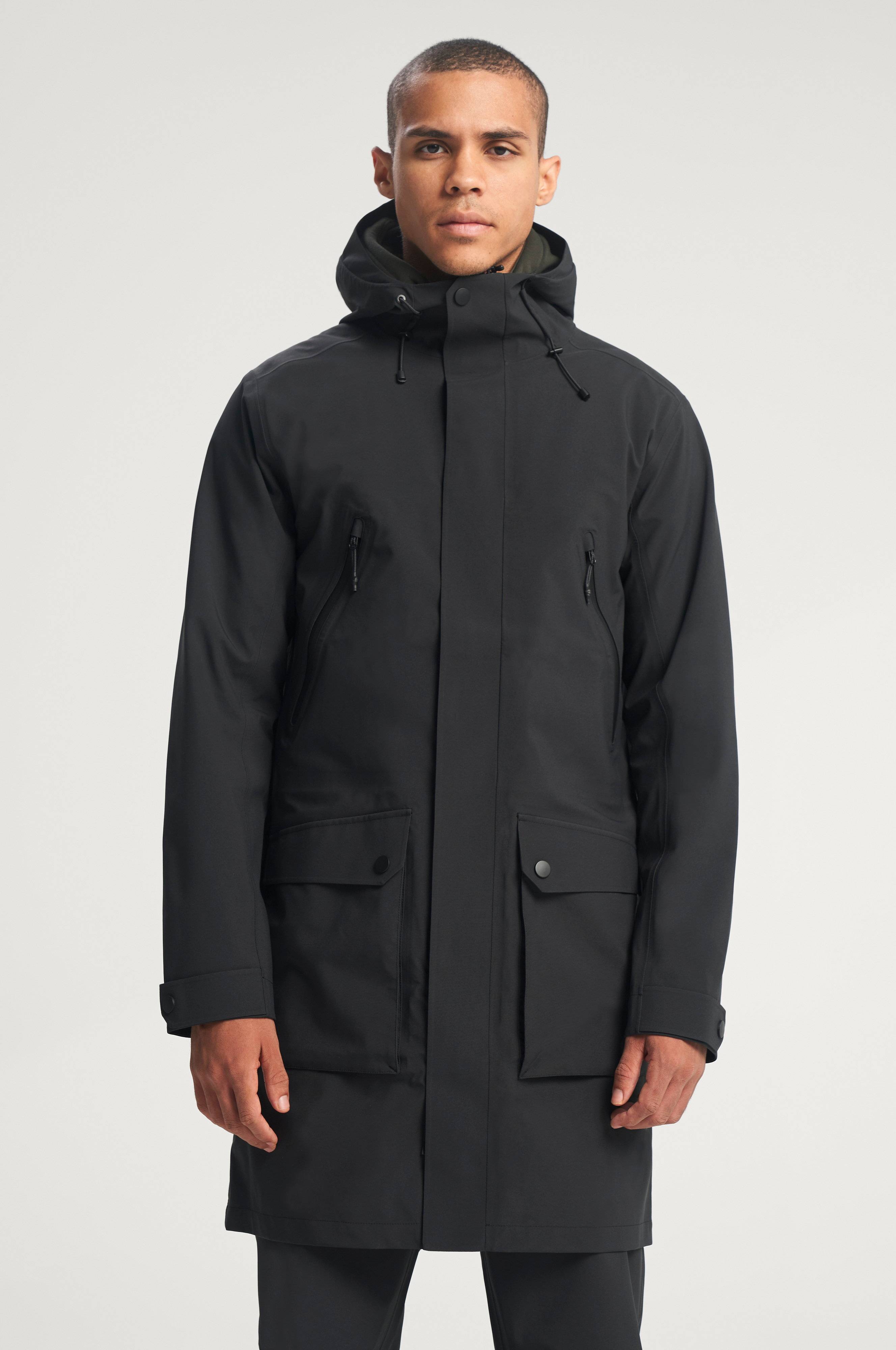 Skalparkacoat 3-Layer Shell Coat fra Studio Total Active. Skalparkacoat med 3-lagskonstruktion og yderstof der er lamineret sammen med en membran og for, som er vand- og vindtæt samtidigt med at den ventilerer overskudsvarme væk. Alle sømme er tapede for at vand ikke ska trænge ind i sømmene, hvilket gør jakken helt vandtæt. 5000 mm vandsøjletryk og åndbarhed op til 5000 g/m2/24h. Pasformen er regular til slim. Yderstoffet har mekanisk stretch før øget komfort og bevægelighed.