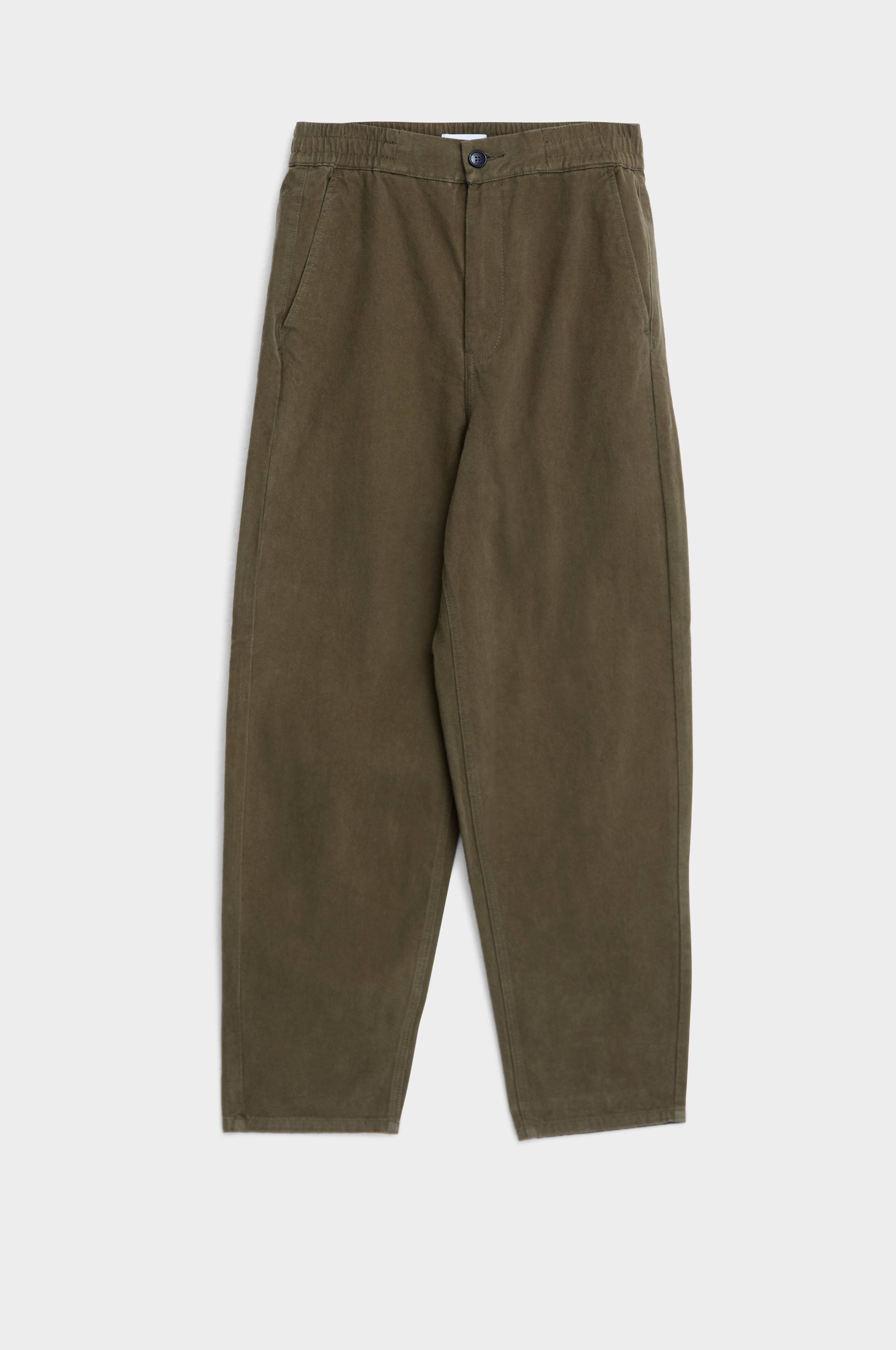 Utility Chino er en afslappet, regular chino med en hellange ben. Stoffet er i en blød kanvaskvalitet.Bukserne har gylp og knap i taljen med et elastisk waistband. To sidelommer og to baglommer med lommeklap og knap.