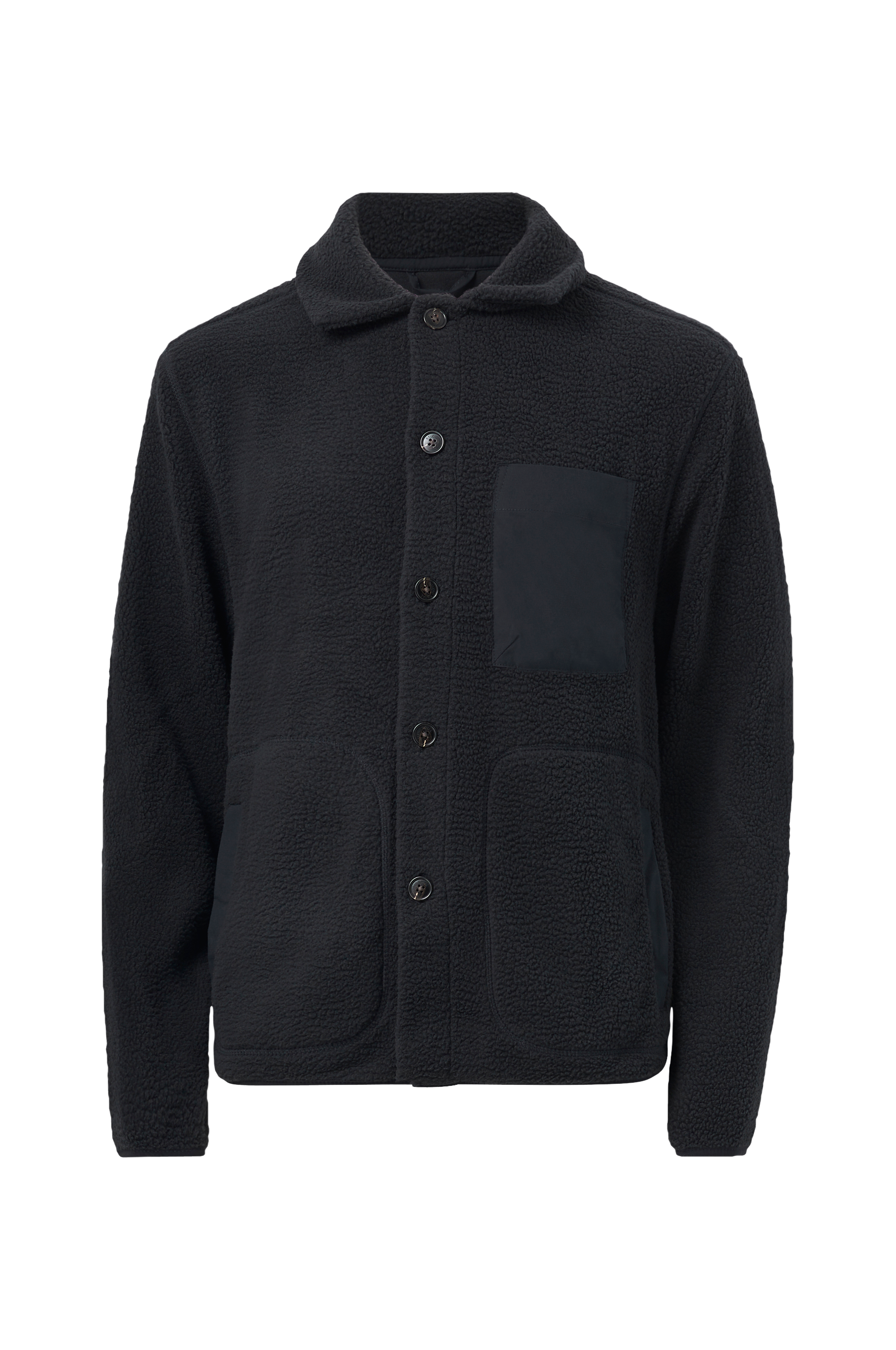Overshirt i fleece med knapper foran. To lommer forneden og en vævet brystlomme med lynlås.