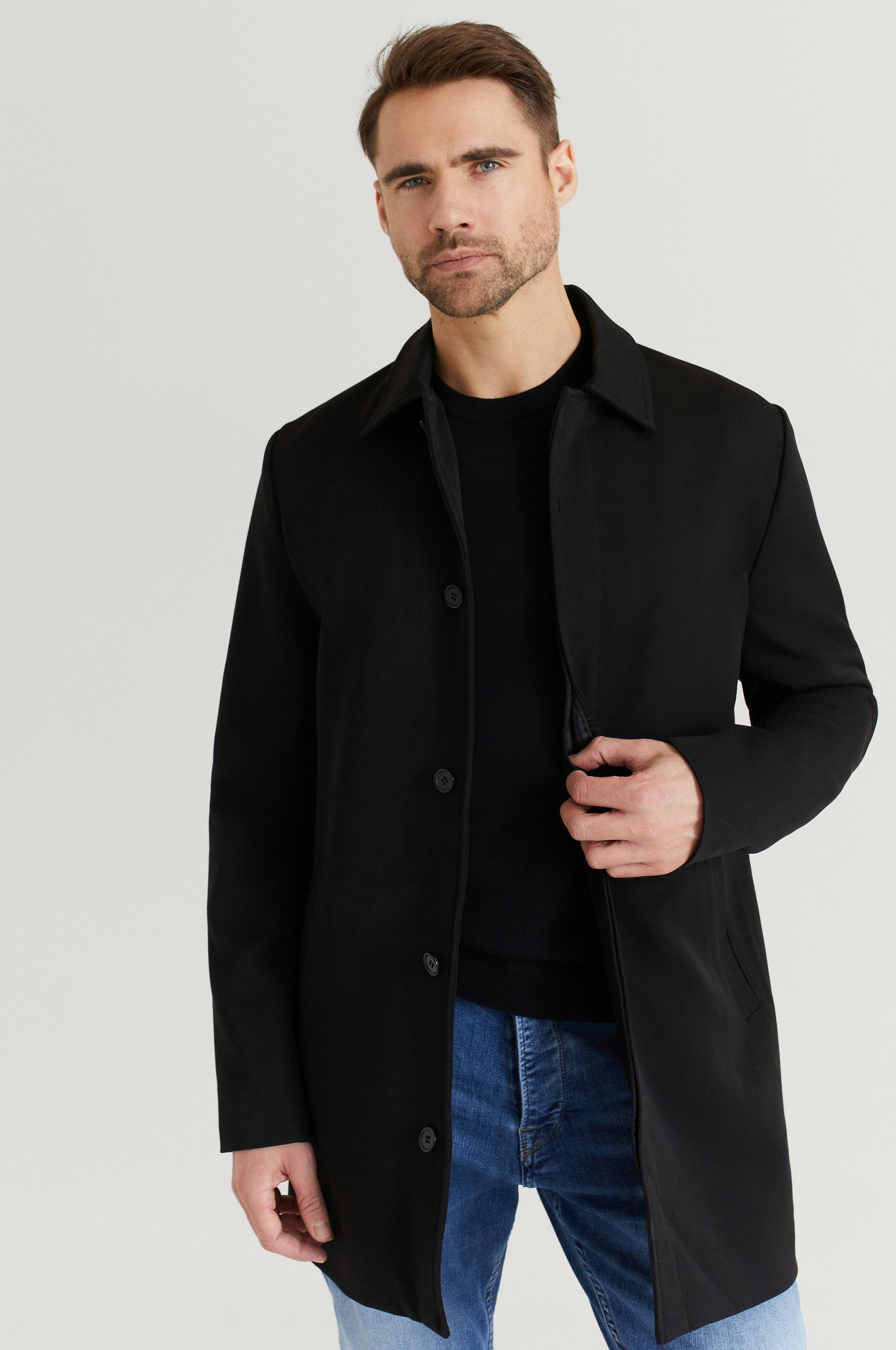 Frakke Car Coat fra Studio Total. Den perfekte forårsfrakke i en tyndere kvalitet. Den har krave og skjulte knapper foran. Pasformen er normal til slim. To sidelommer og en inderlomme.