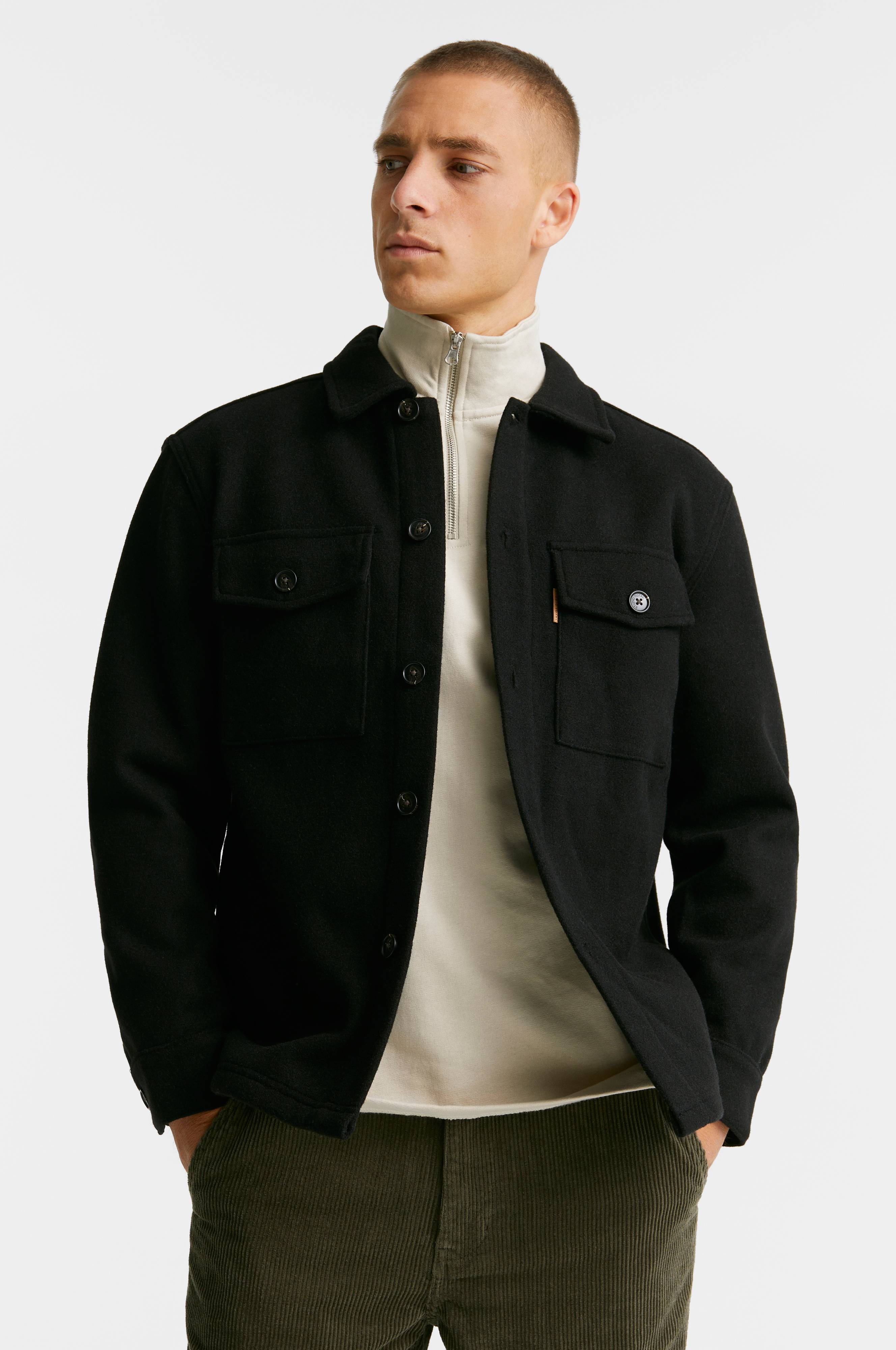 Outdoor Overshirt fra Studio Total. Overshirten er i en blød, grovere kvalitet med normal pasform. Klassisk krave og to brystlommer med lommeklap og knap. Der sidder også to lommer i sidesømmen