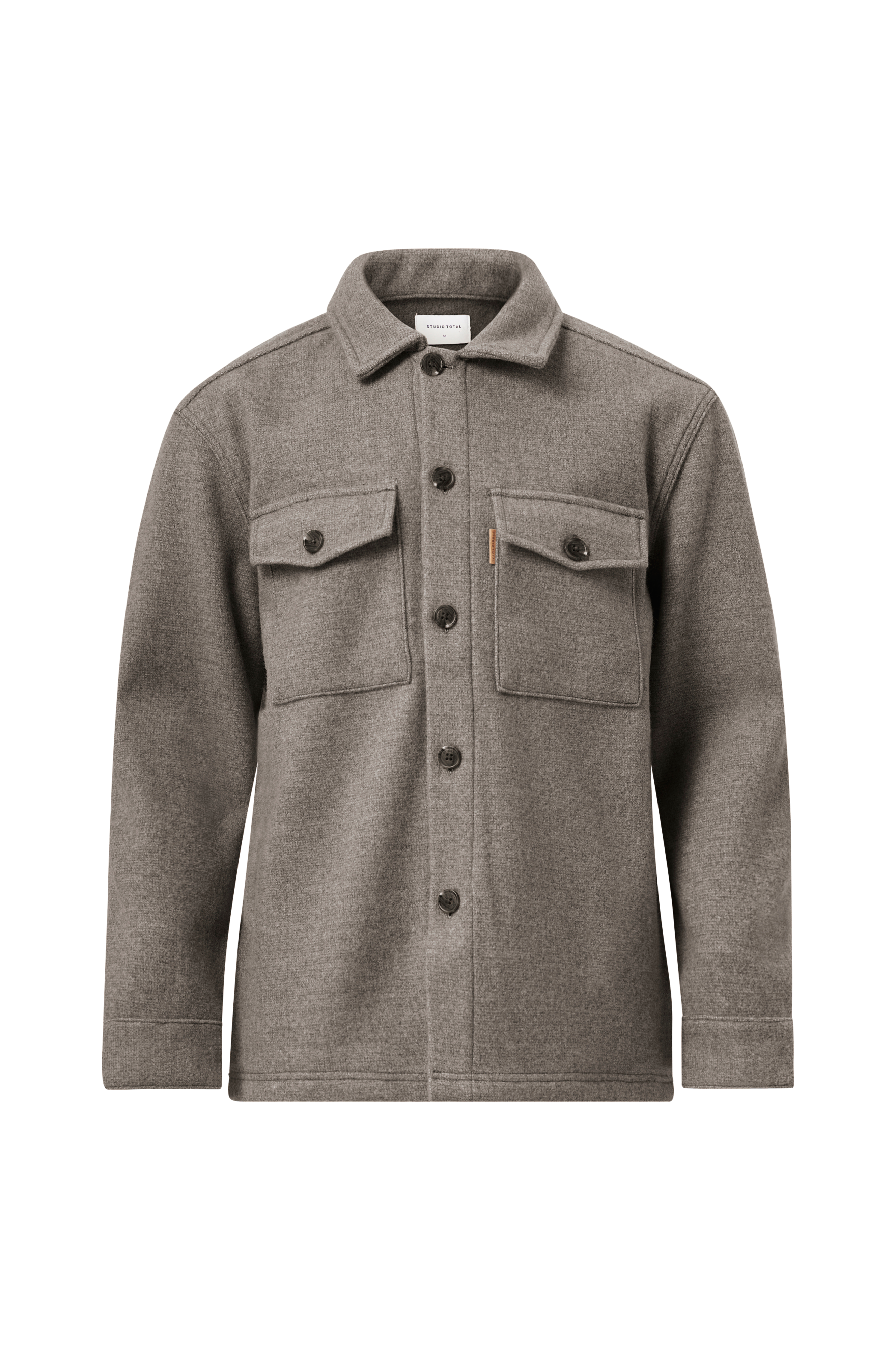 Outdoor Overshirt fra Studio Total. Overshirten er i en blød, grovere kvalitet med normal pasform. Klassisk krave og to brystlommer med lommeklap og knap. Der sidder også to lommer i sidesømmen