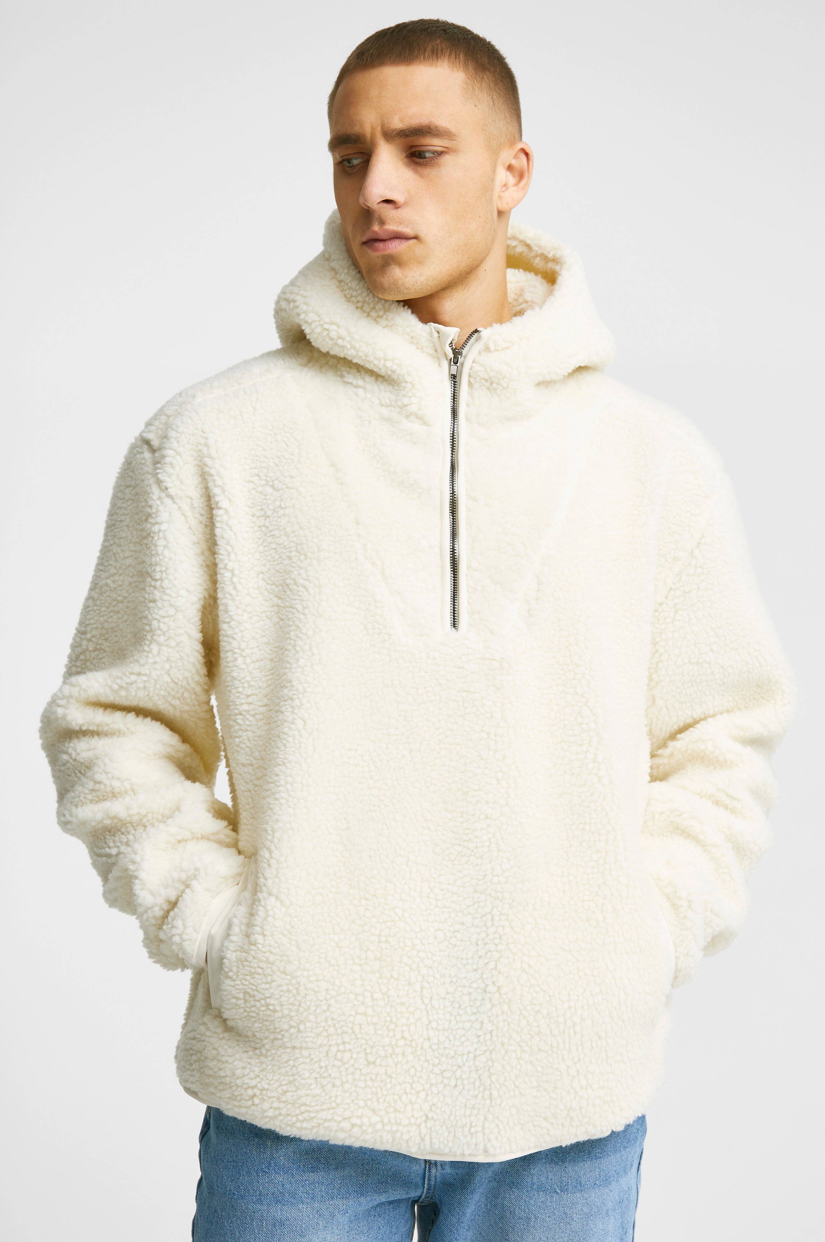 Plystrøje med hoodie i anorakmodel. Halv lynlås og smal elastikkant i kant forneden og ærmekant. To sidelommer. Relaxed pasform.