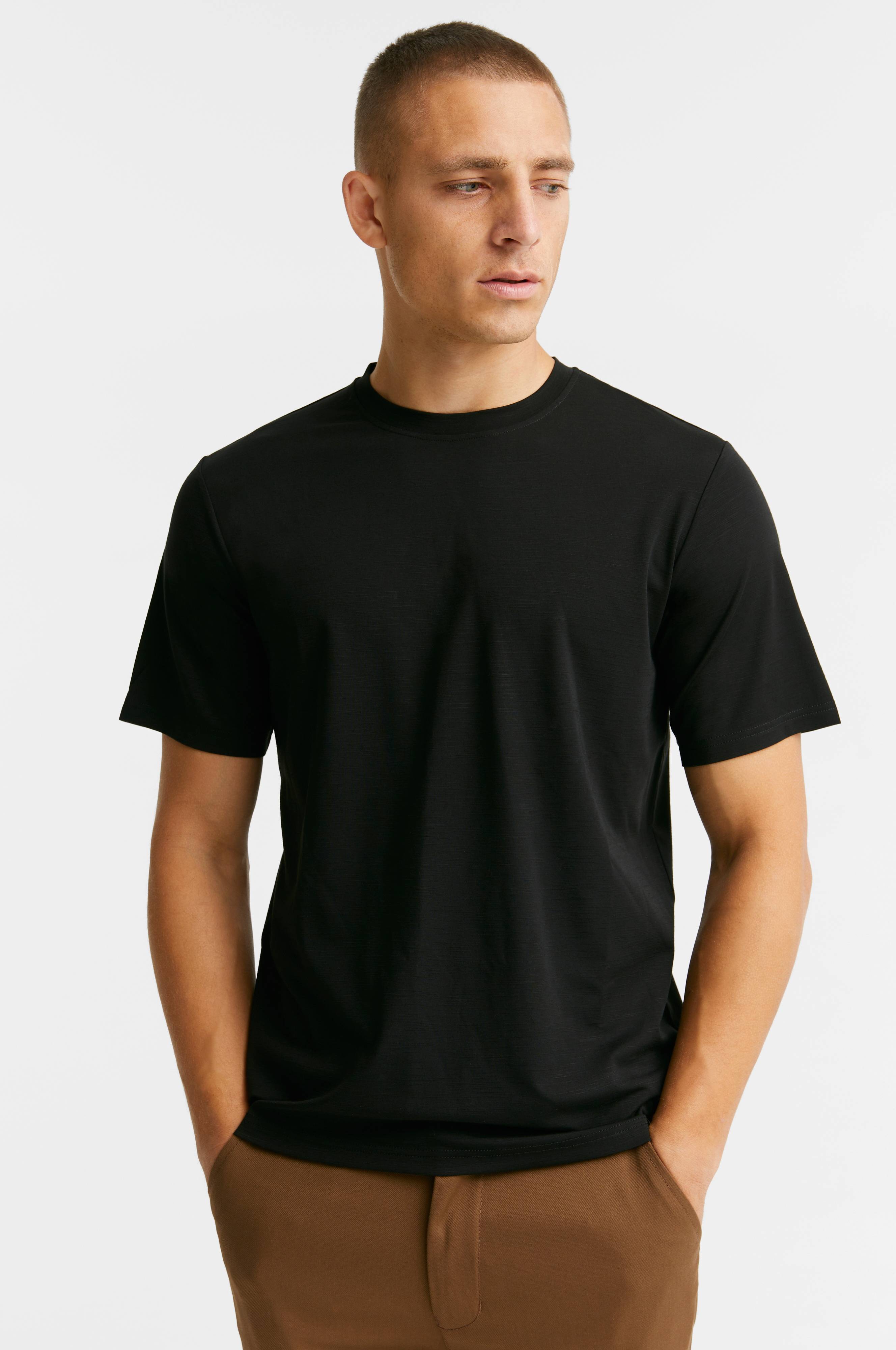 Premium Tee fra Studio Total er en skøn T-shirt i en fin og kølig kvalitet med en slubstruktur i stoffet. Pasformen er normal med rund hals og kort ærme. Studio Total-logo forneden i sidesømmen.