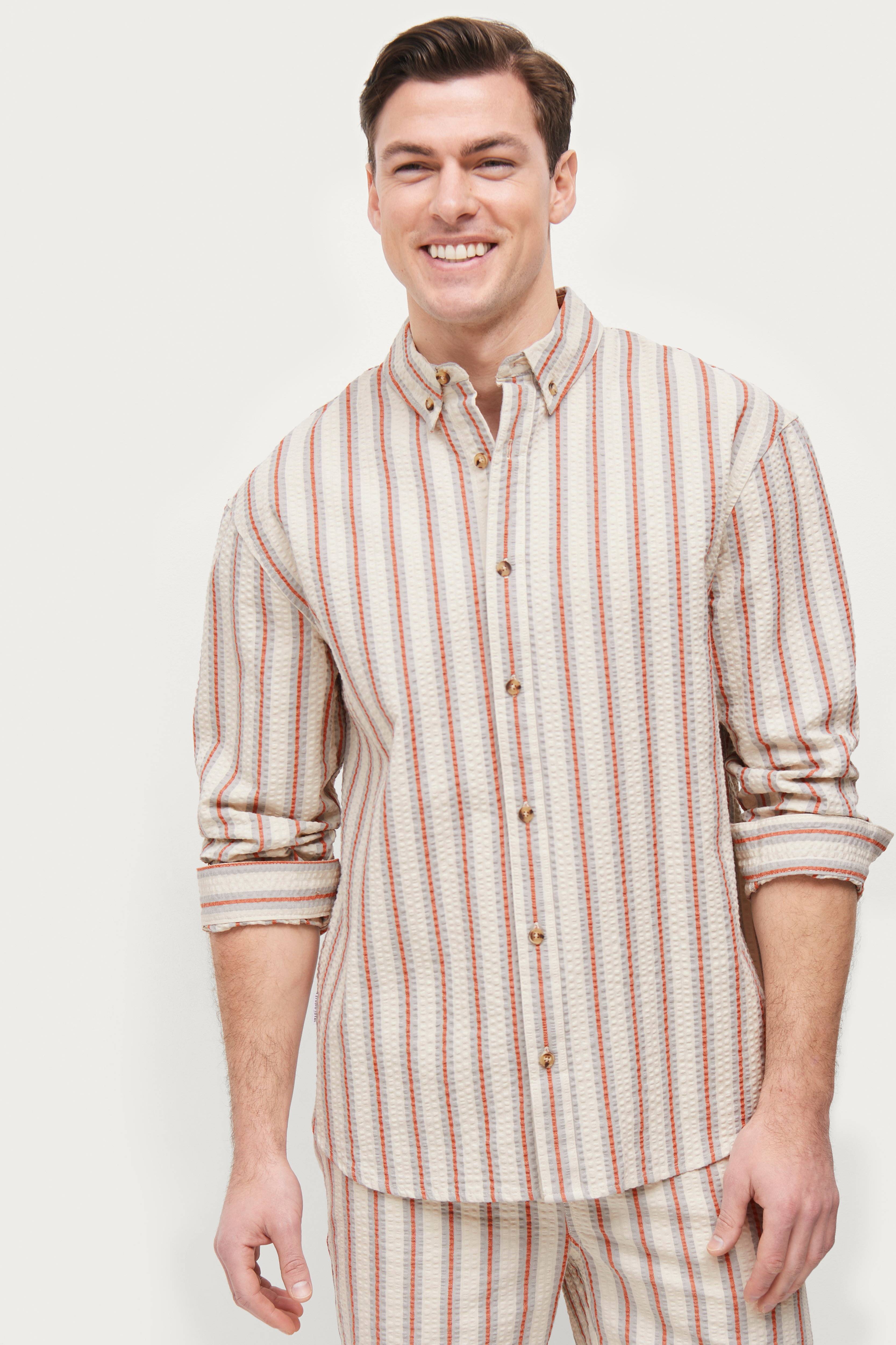 • Skjorte i seersucker• Knapper foran• Button down-krave• Lange ærmer med manchet• Lidt længere bagtil• Længde: 82 cm i størrelse M