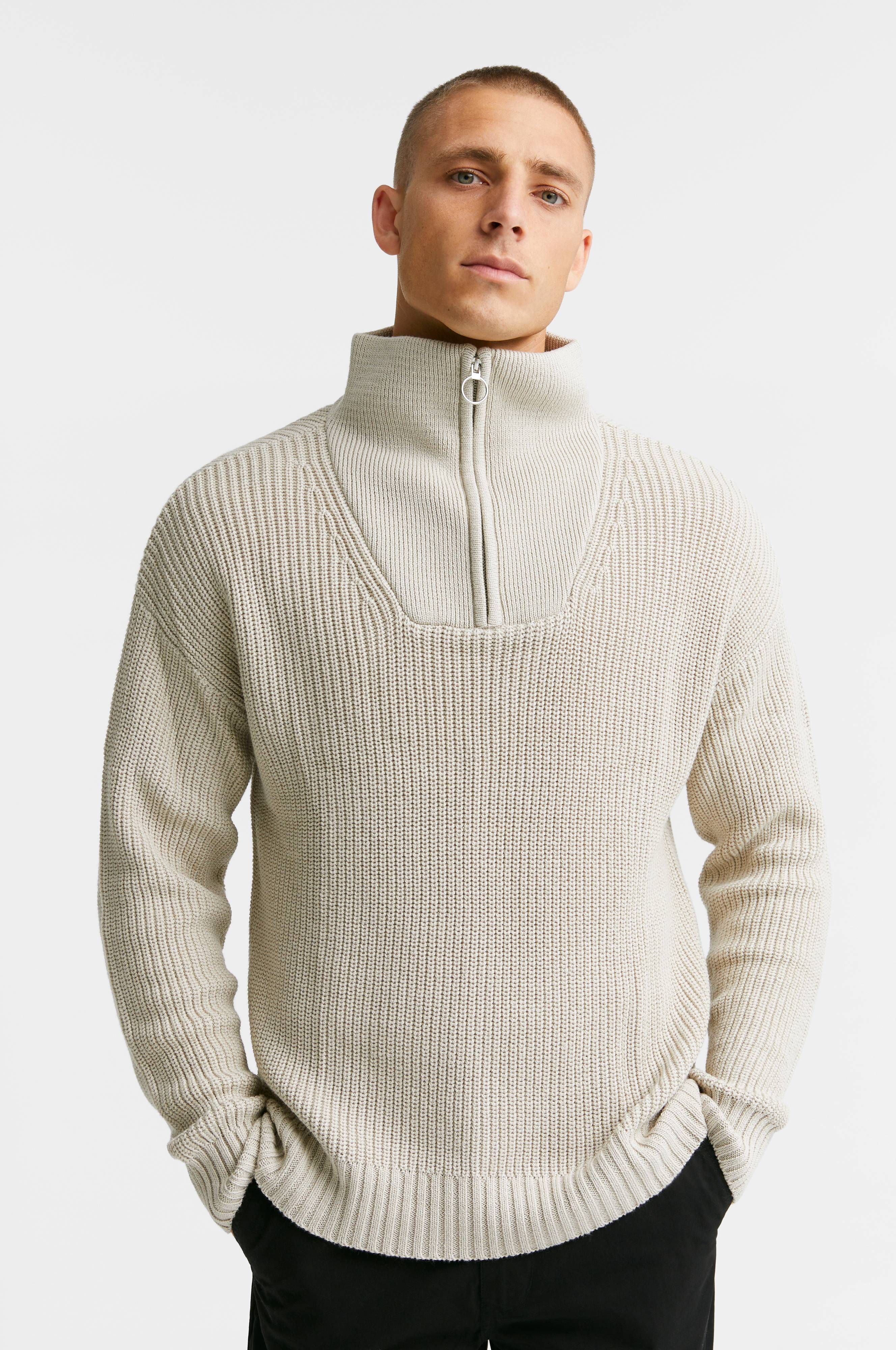 Striktrøje fra Studio Total med høj krave med lynlås. Trøjen har lige snit forneden og normal pasform. Strikket i en blød bomuldsblanding.