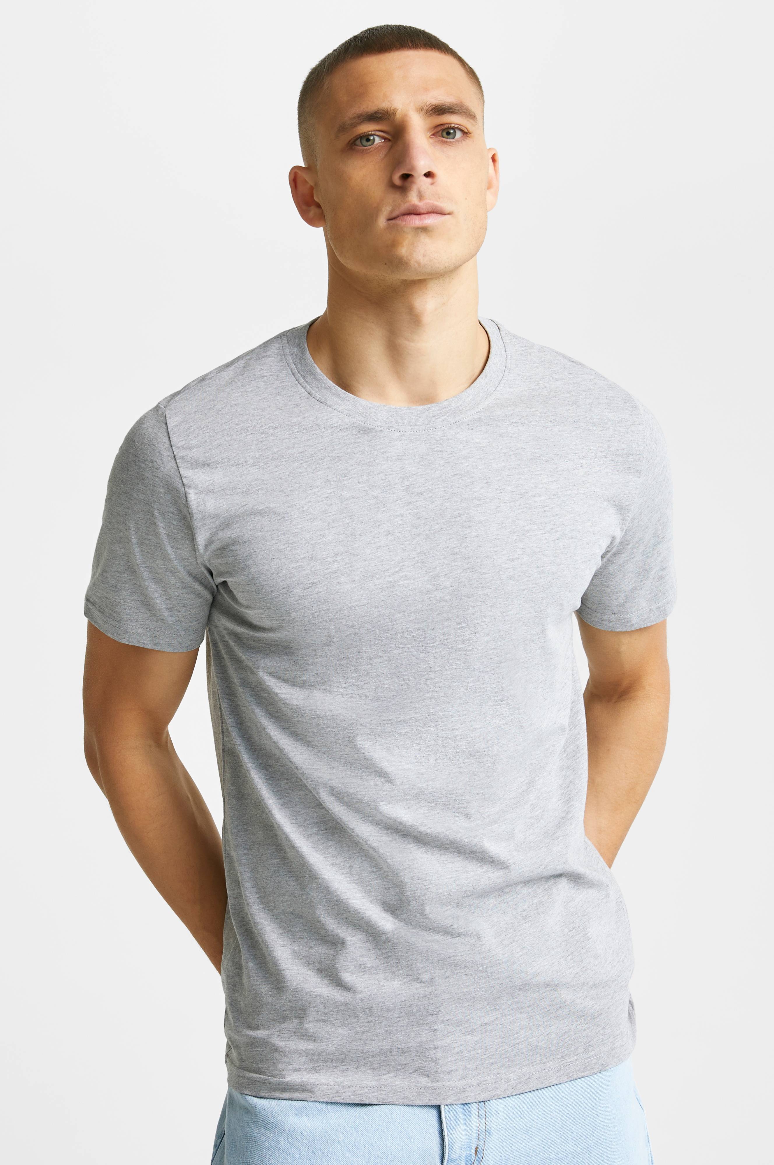T-shirt i skøn bomuldsjersey. Normal pasform med rund og noget bredere halsudskæring med rib, som giver den et clean look. Perfekt til at bære som den er eller under en trøje. Et must i garderoben.