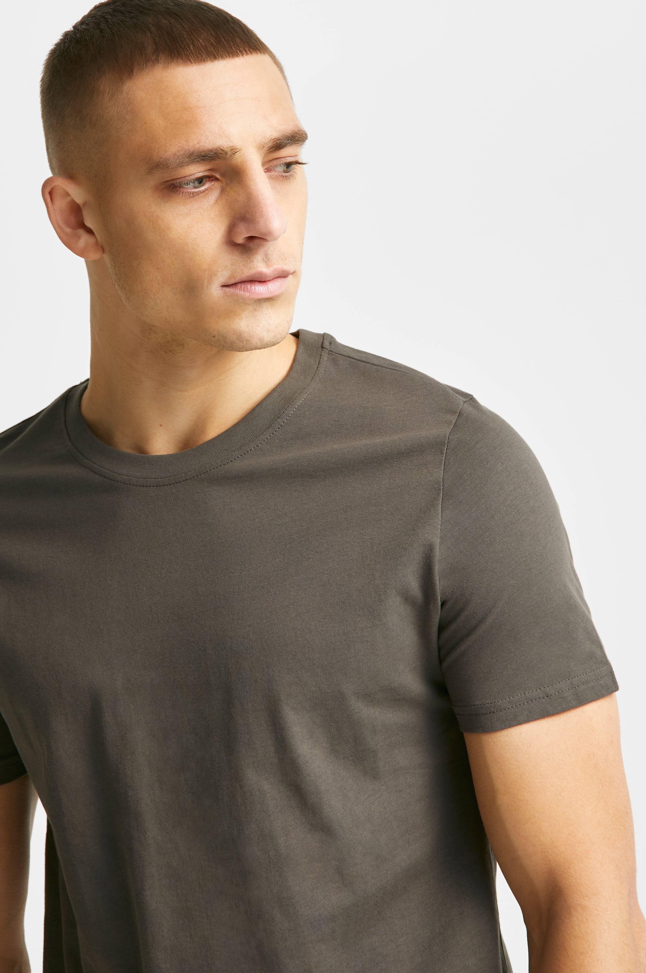 T-shirt i skøn bomuldsjersey. Normal pasform med rund og noget bredere halsudskæring med rib, som giver den et clean look. Perfekt til at bære som den er eller under en trøje. Et must i garderoben.