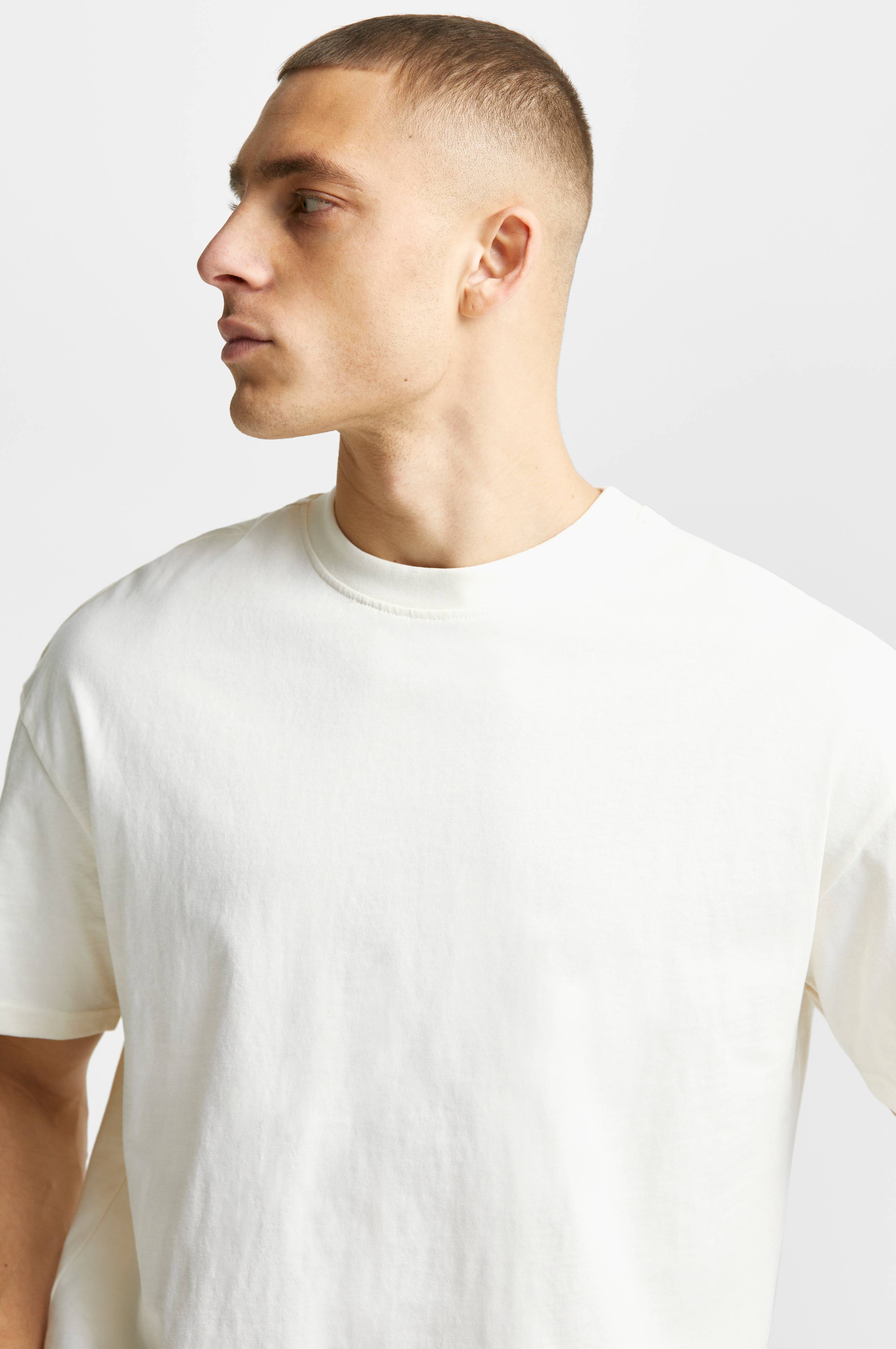 T-shirt Studio SS Tee fra Studio Total. T-shirt med oversized pasform og lav skuldersøm. Rund hals med en noget højere ribkant. Vil du have en t-shirt med regular fit, anbefaler vi i stedet Capsule Tee varenr. 7011315.
