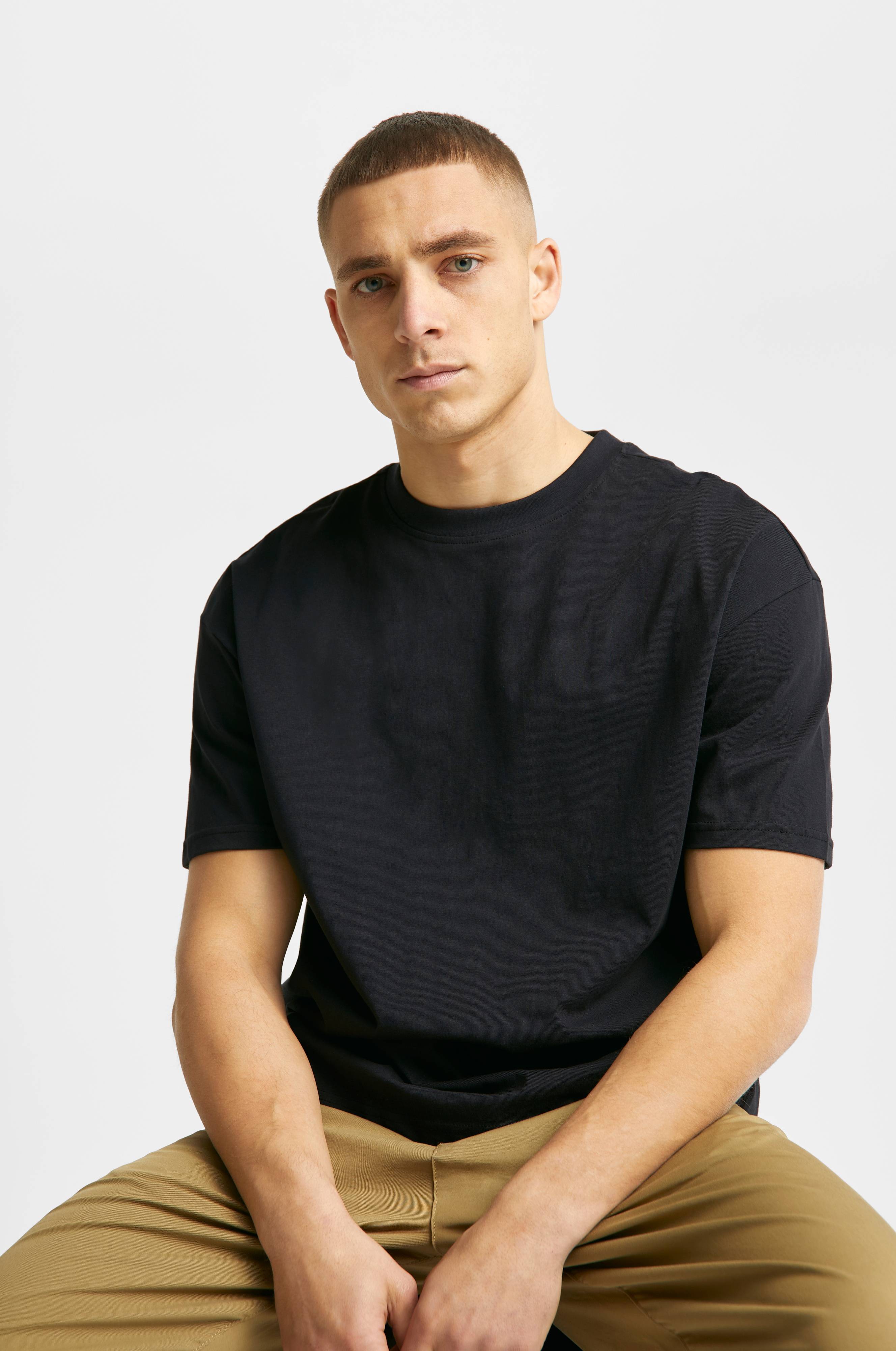 T-shirt Studio SS Tee fra Studio Total. T-shirt med oversized pasform og lav skuldersøm. Rund hals med en noget højere ribkant. Vil du have en t-shirt med regular fit, anbefaler vi i stedet Capsule Tee varenr. 7011315.
